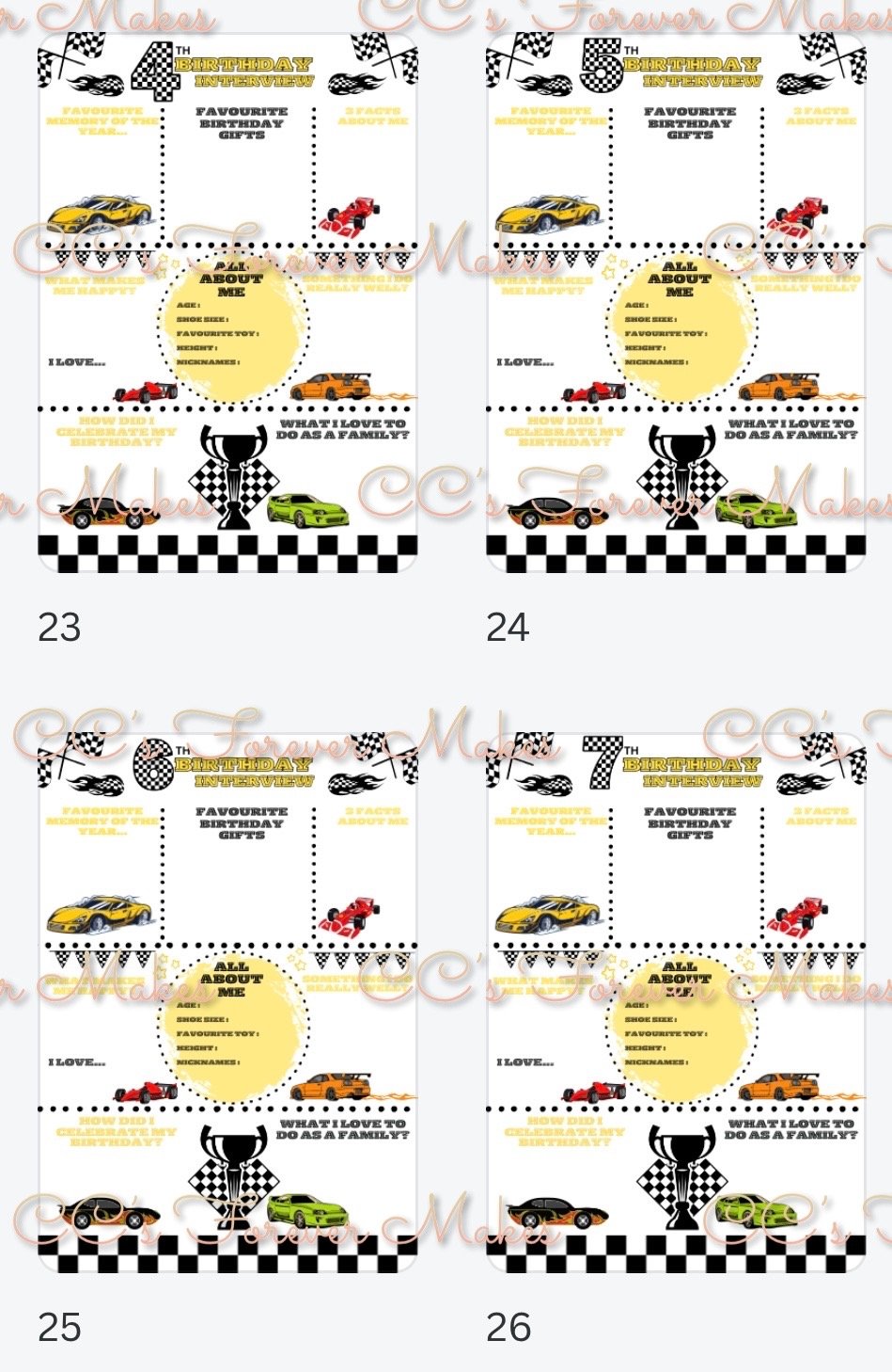 DIGITAL RACING CAR BIRTHDAY INTERVIEW BOARDS