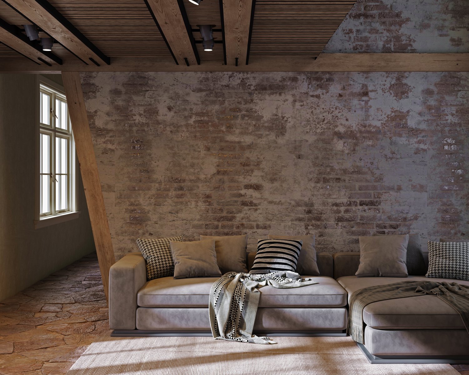 Loft-style interior visualisation, 3ds Max Corona 2022. Ready-made scene with all lighting, camera and texture settings.