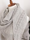 This soft, lacy shawl, which is knit from a side point outward, is full of texture and warmth. It features repeating bands of seed stitch and lace to create a striped effect that is both strong and soft. With its easily memorized pattern and short repeats, this shawl is perfect for soothing stitch sessions.