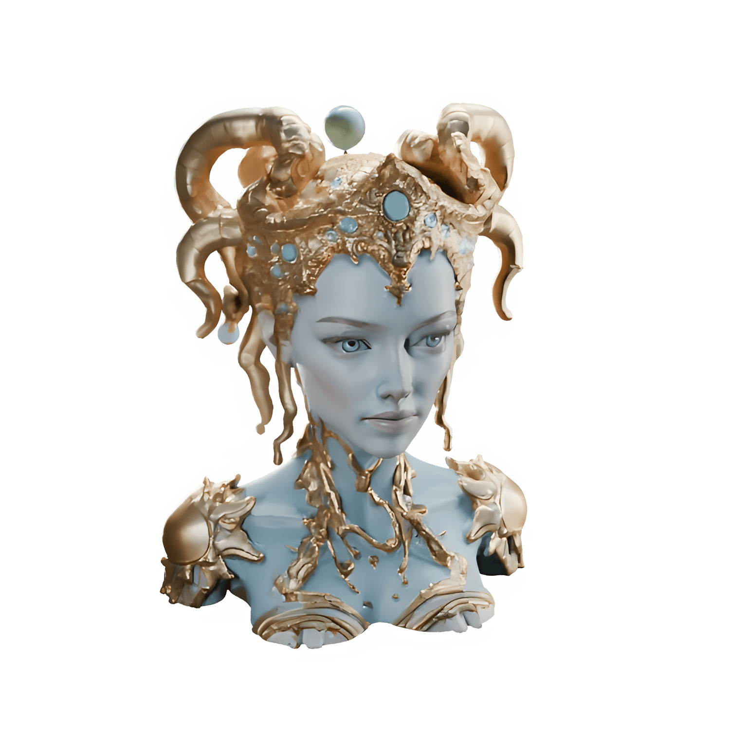 This stunning collection features three variations of a mystical queen or goddess design, perfect for collectors and fantasy enthusiasts! Each piece showcases intricate details with a beautiful blue and gold color scheme.