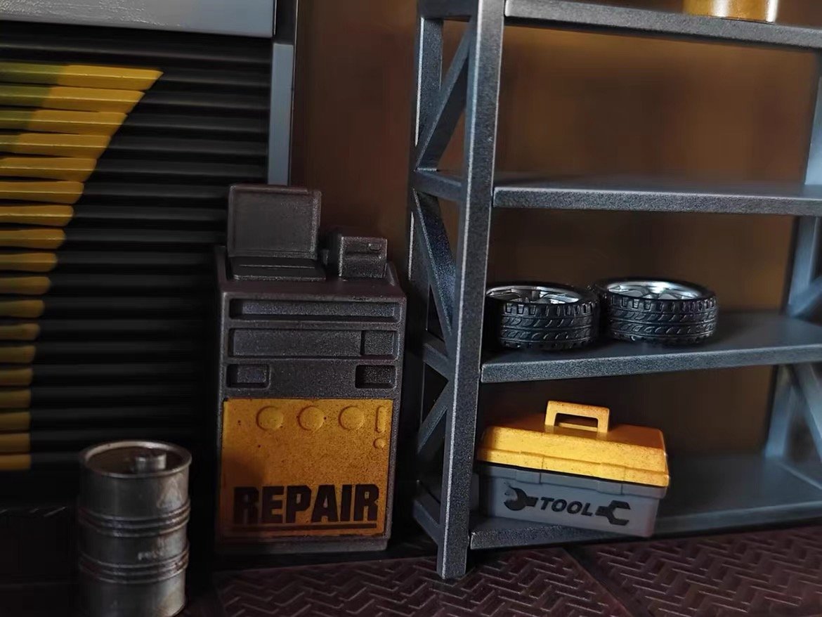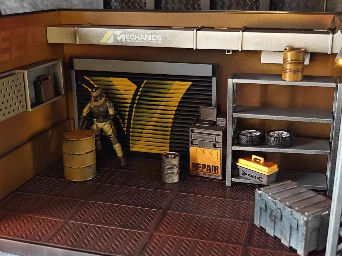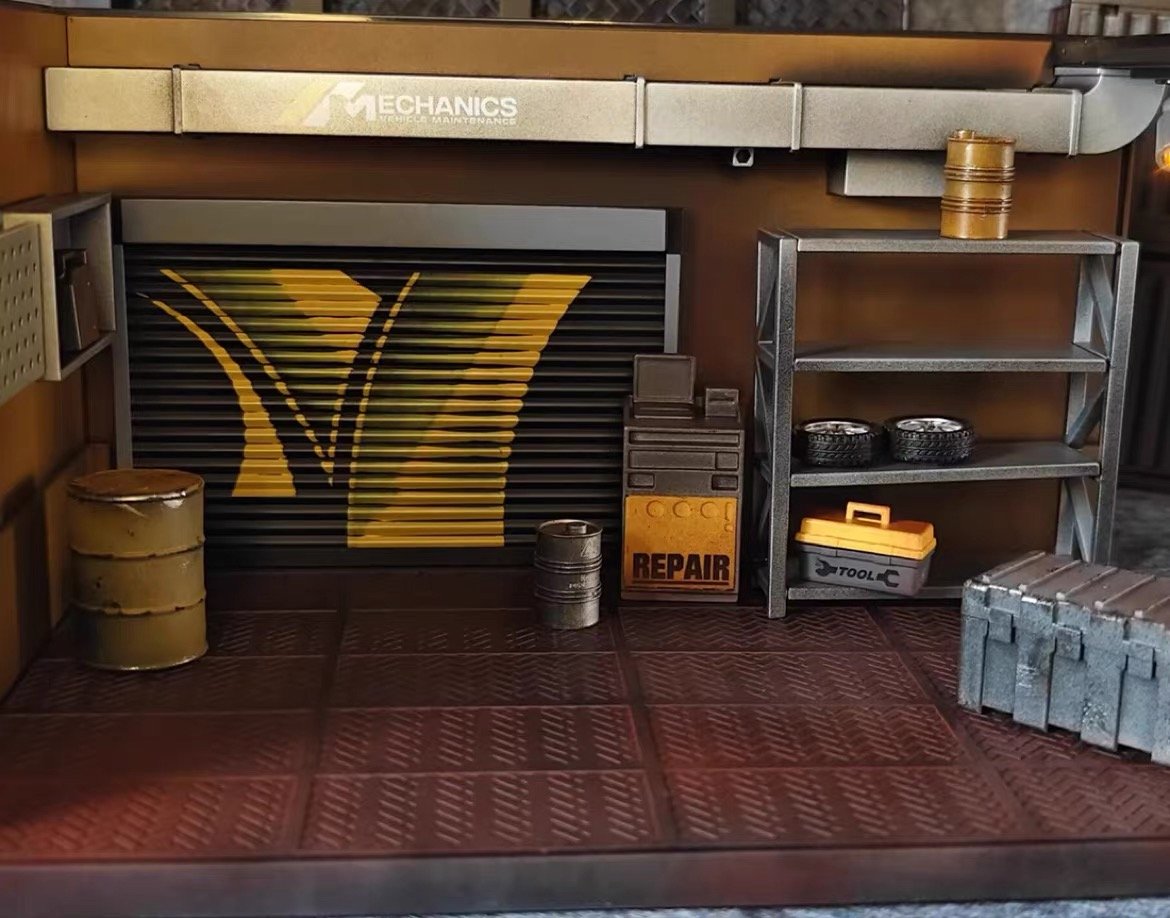 Garage Playset (1:18 Scale, Working Lights, Includes Crates and Shelves)