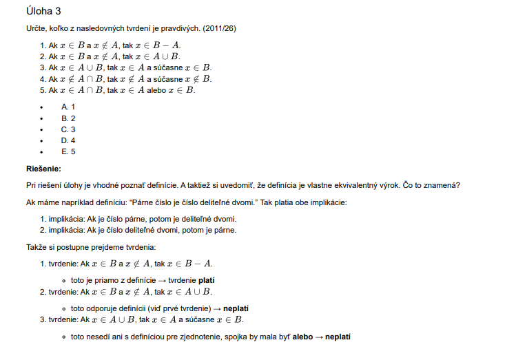 51 riešených úloh z množin ako príprava na externú maturitu z matematiky: