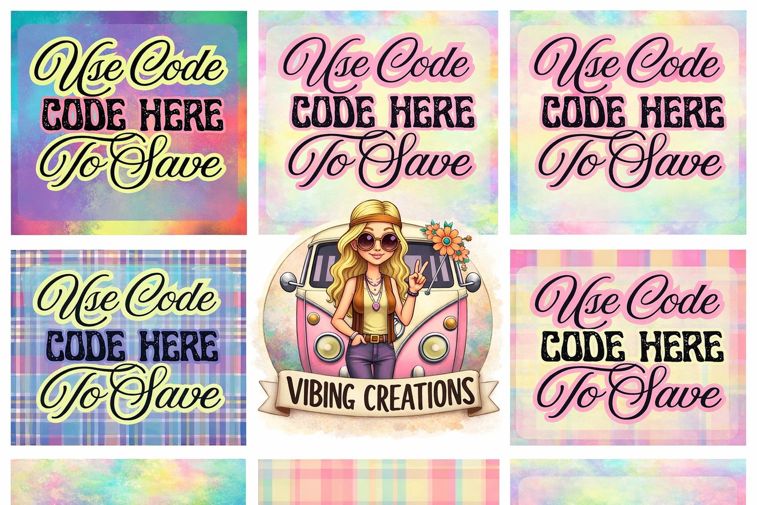 This trendy, colorful design set features multiple aesthetic styles including soft pastels, plaid patterns, and vibrant blends — giving you the perfect options to match your brand vibe.