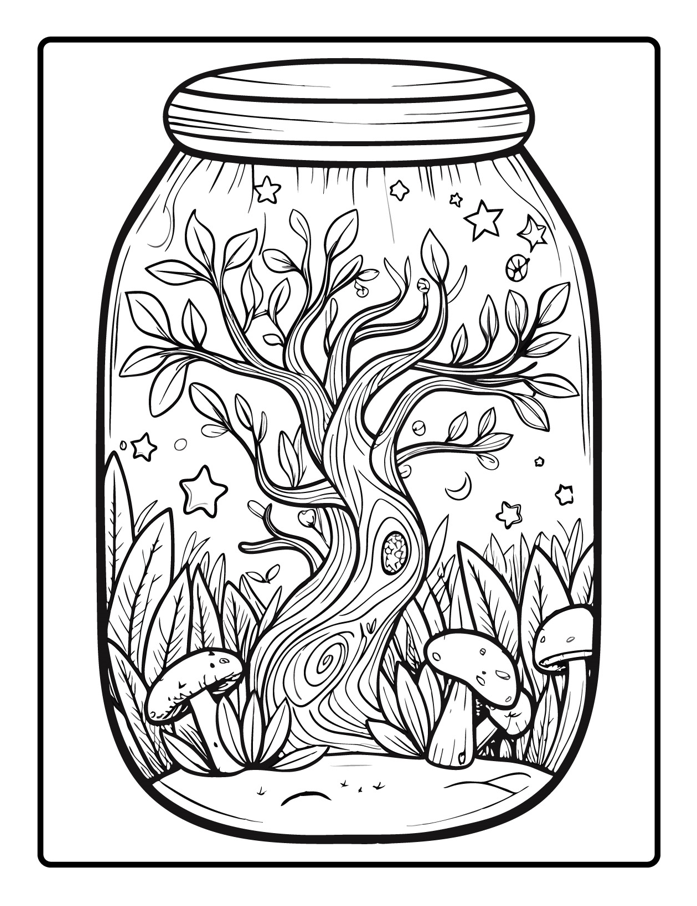 Beautiful Life in Jar Coloring Pages