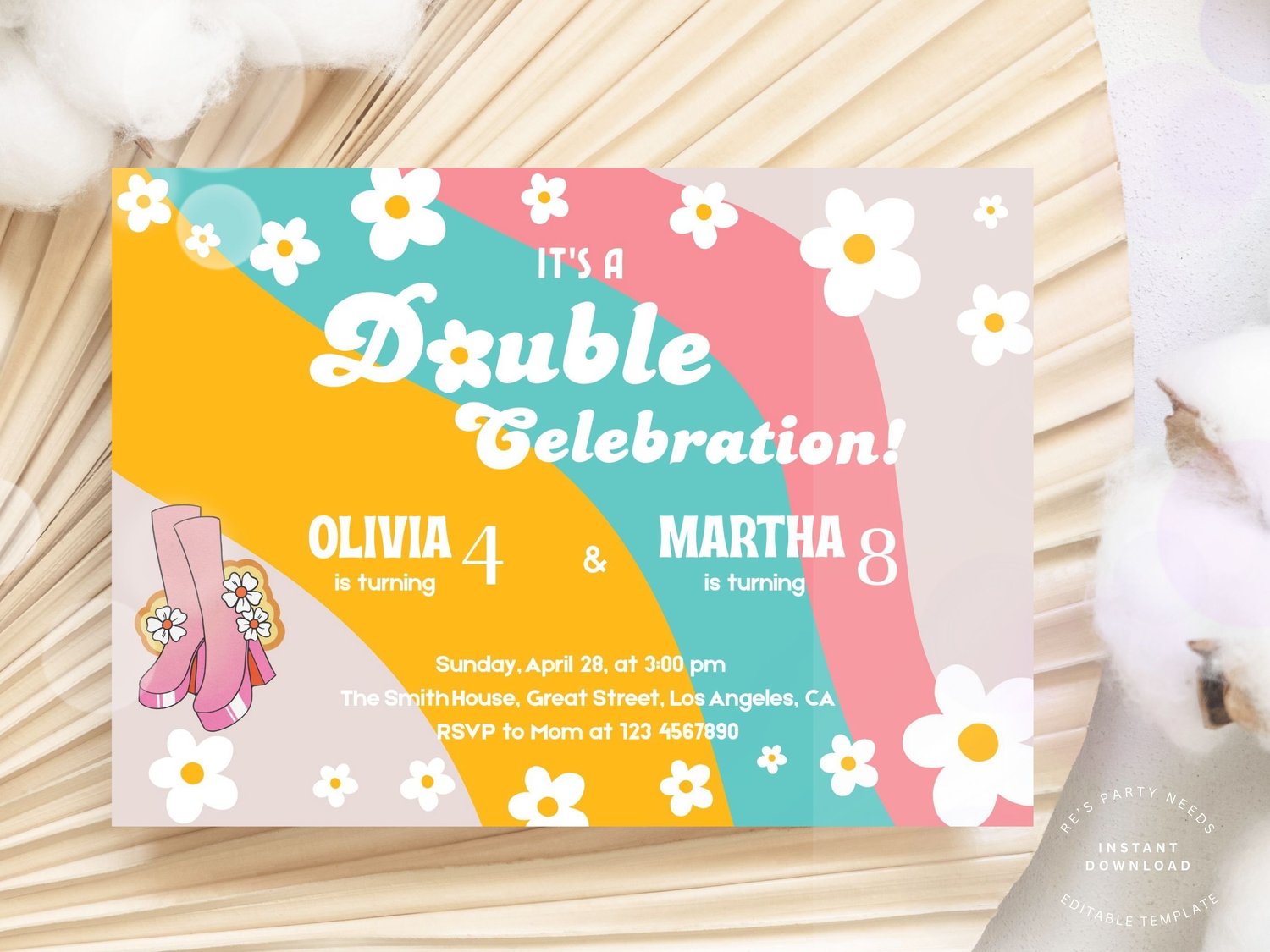 Soccer Joint Birthday Invitation, Editable Combined Boys Printable Invite, Siblings Sports Party Digital Download, Football Theme Template