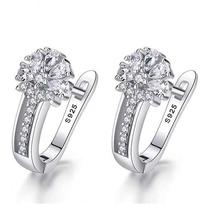 925 Sterling Silver Crystal Flower Earrings for Women Wedding Engagement Gift