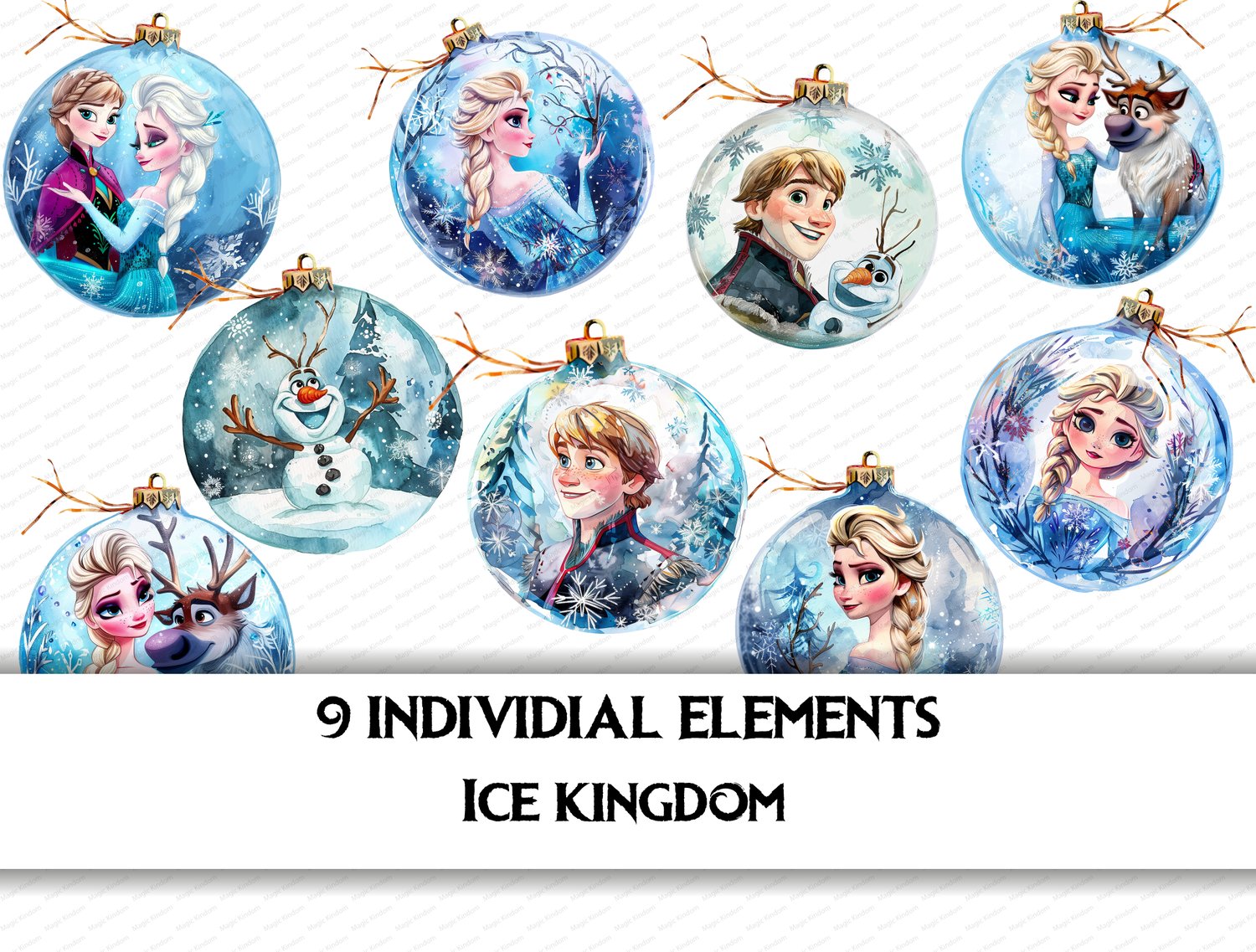 9 Disney Ice Kindom clipart in PNG format 12 x 12 inches (30.5 x 30.5 cm) 300 dpi resolution.