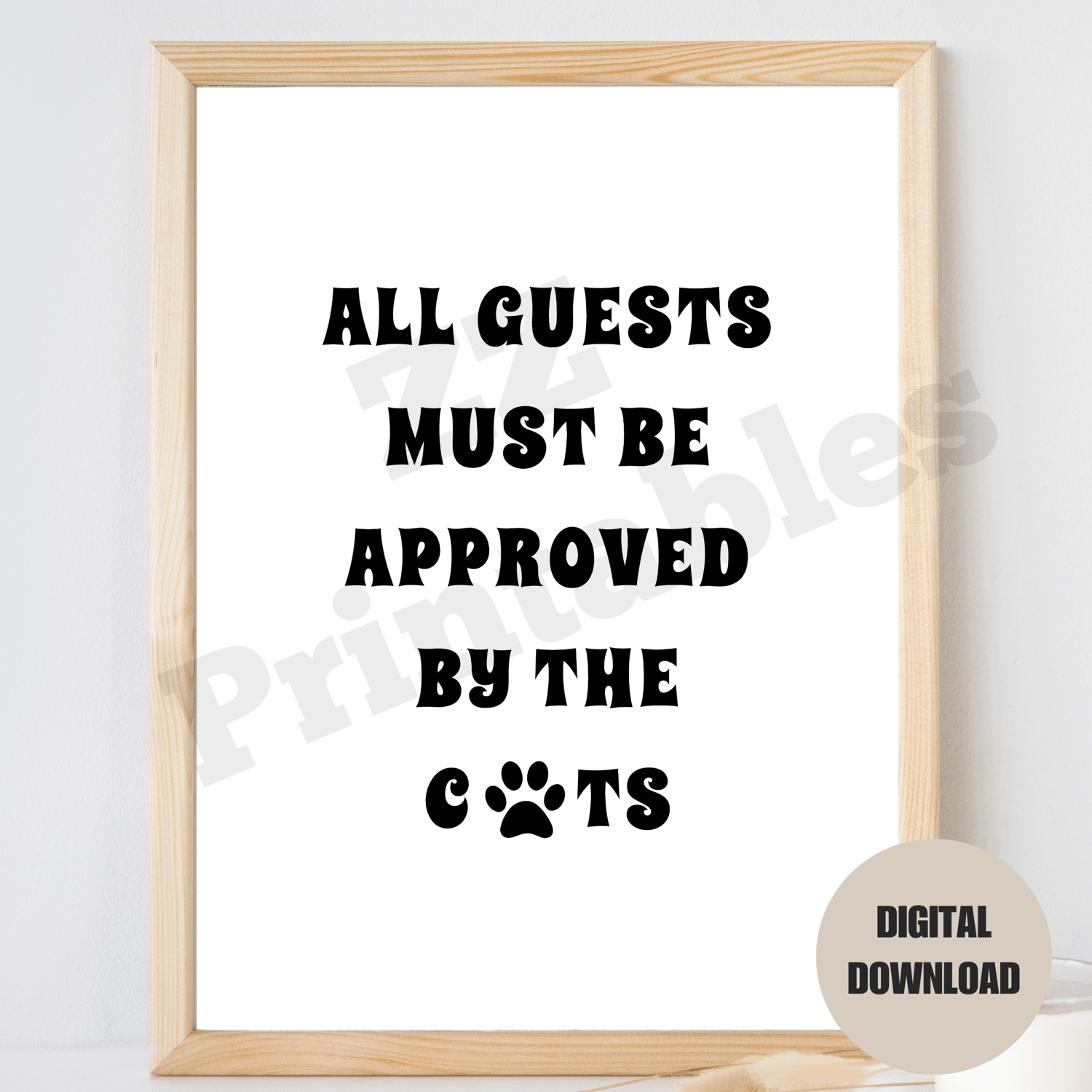 All Guests Must Be Approved By The Cats Paw Print Poster Trendy White Black Typography Text Decor Printable Wall Art Digital Download JPEG. The design comes in 5 different sizes. The digital download consists of a zipped file containing 5 high quality JPEG files (300 dpi) and a PDF size chart to help you choose the right file for the printing size you want.