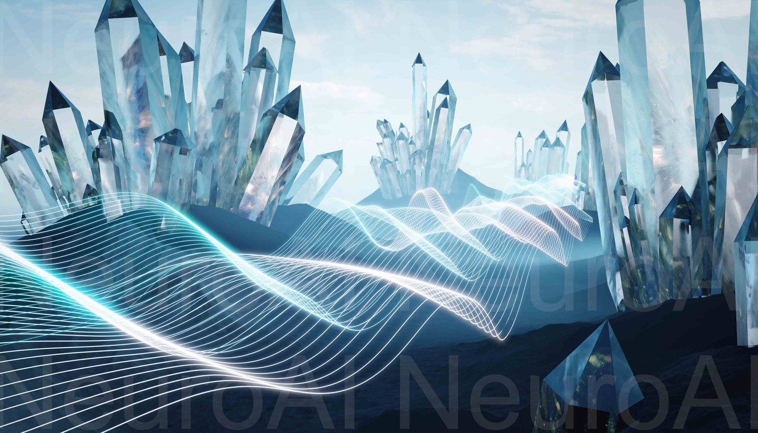 Stunning crystal landscape with flowing light waves