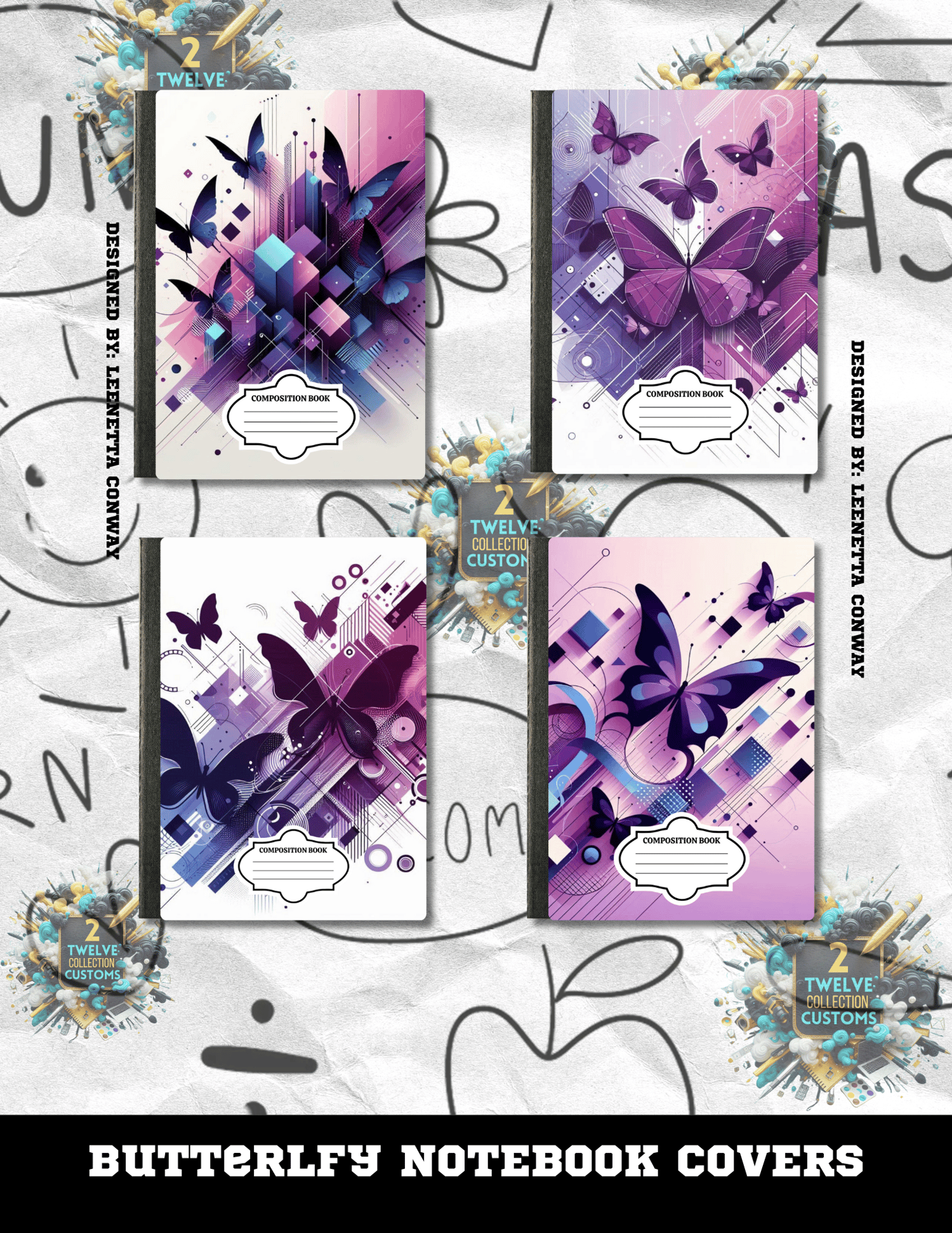 Butterfly Composition Notebook Covers Canva Template 4 Pack #2