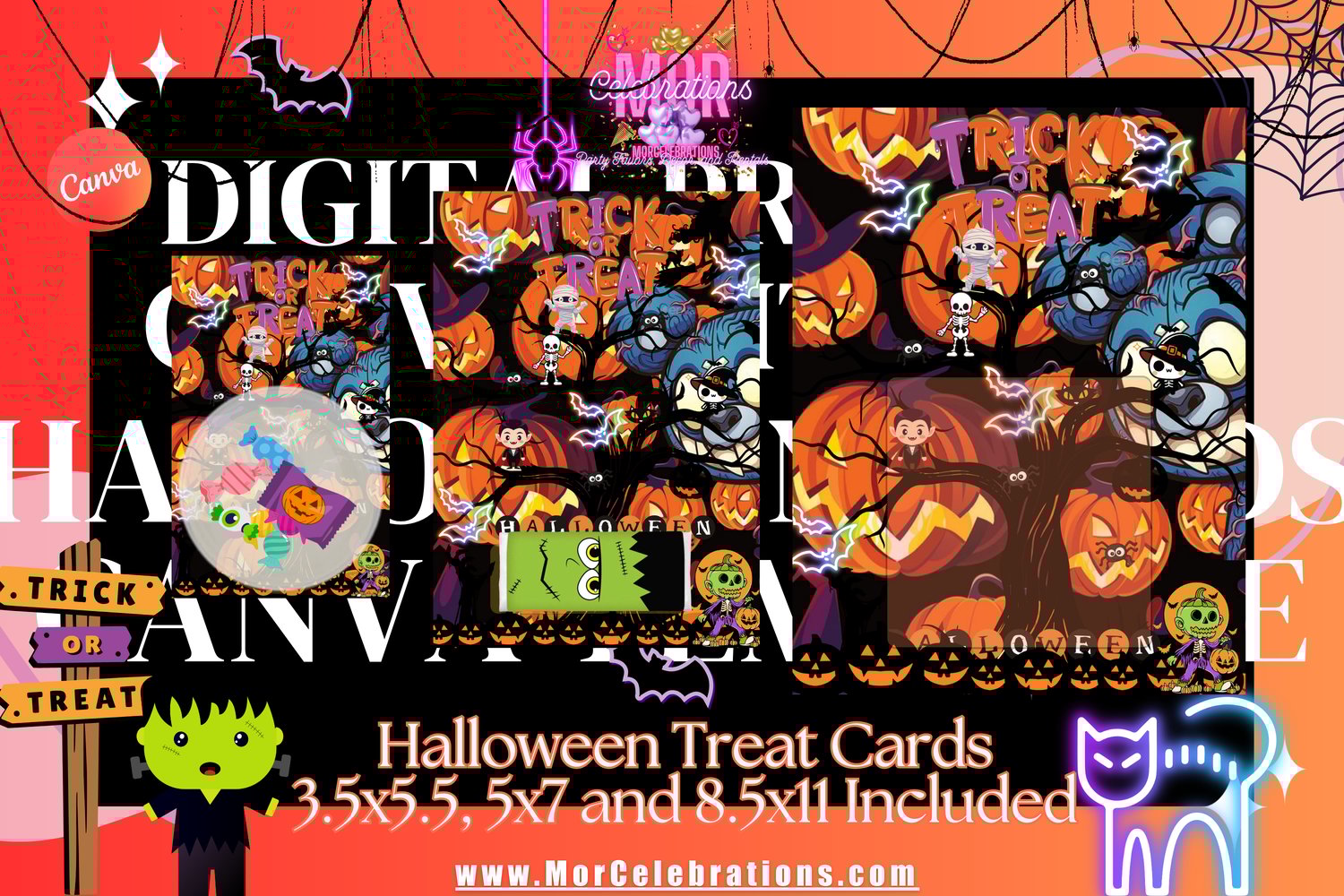 Transform your Halloween celebrations with our Halloween Treat Card from MorCelebrations! This digital design can be customized in Canva to match your spooky style, allowing you to change or add elements, or keep it as is.