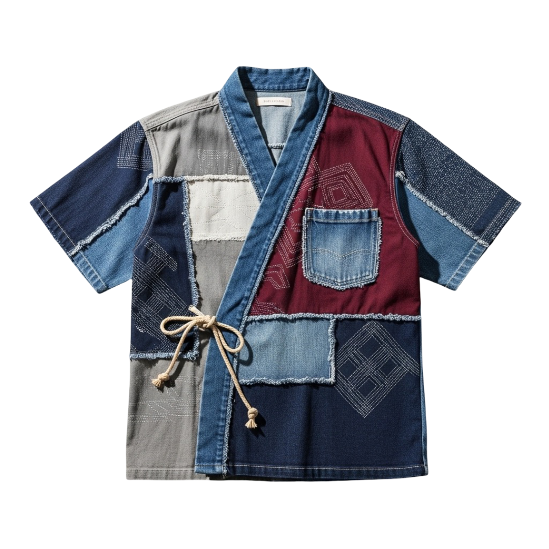 Rebirth Patchwork Denim Kimono Shirt