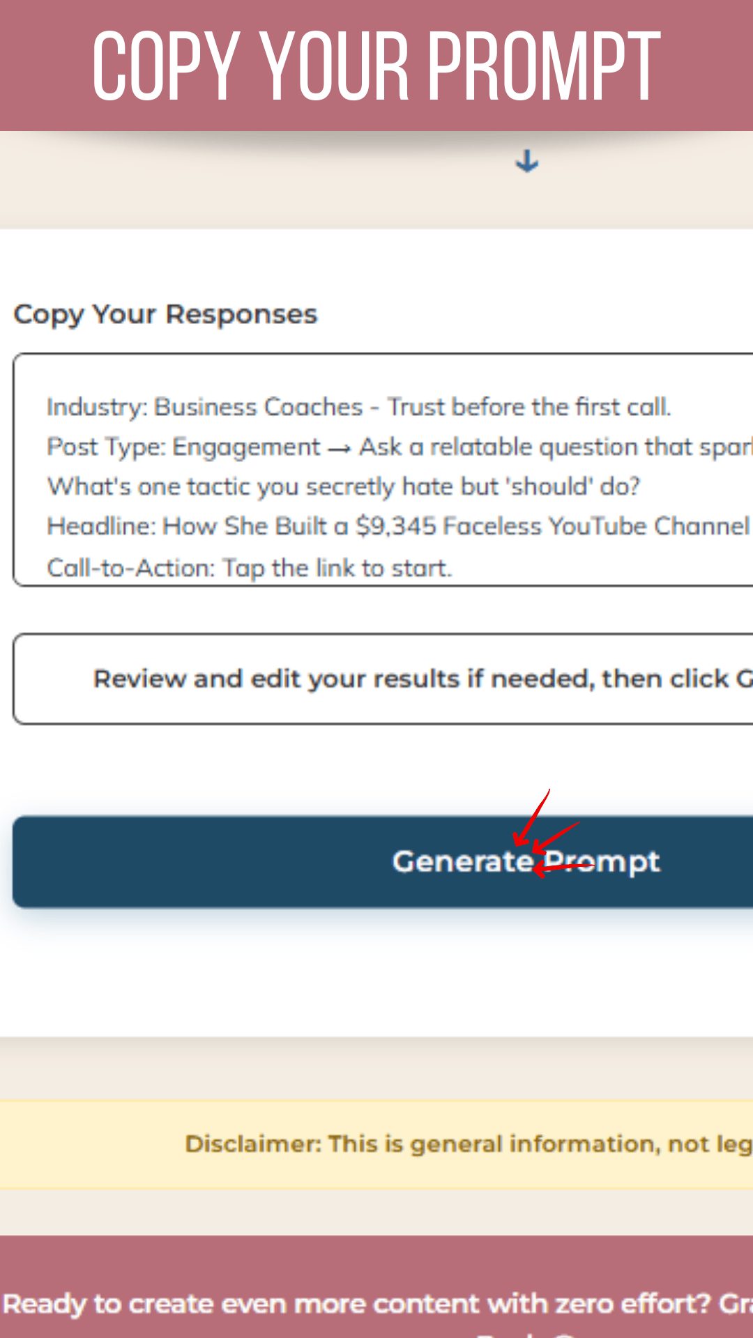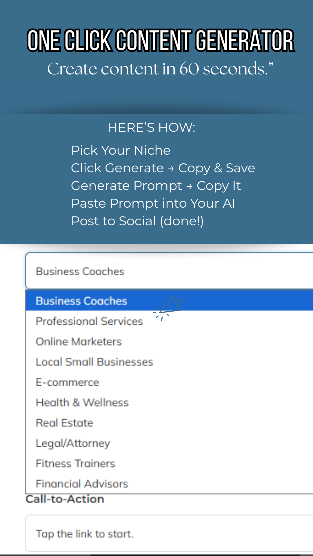 2️⃣ Tick boxes (post type, tone, goal, pain point)