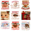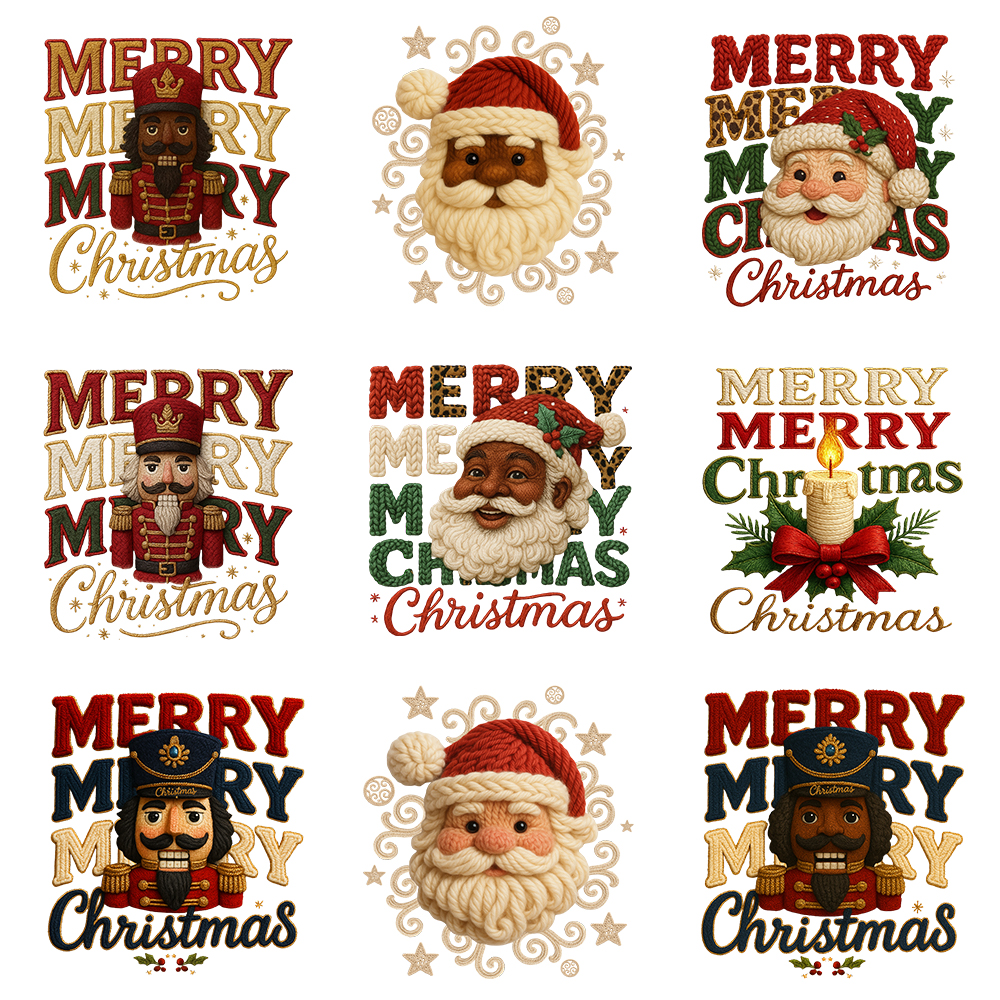 β A variety of compositions: Santa, elves, nutcrackers, gingerbread man, Christmas stocking, tree, candle, cupcake, and more