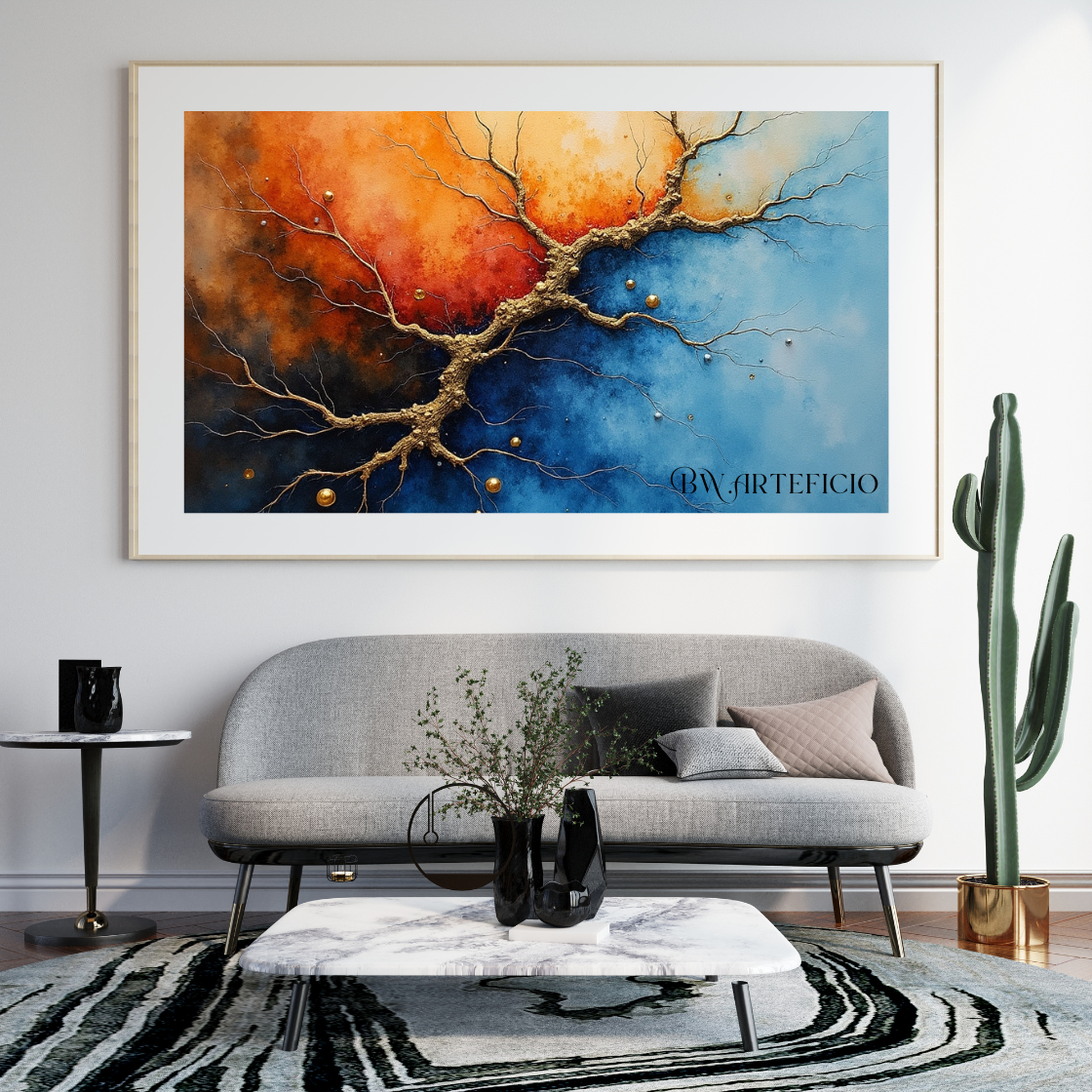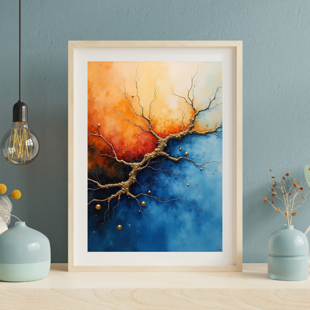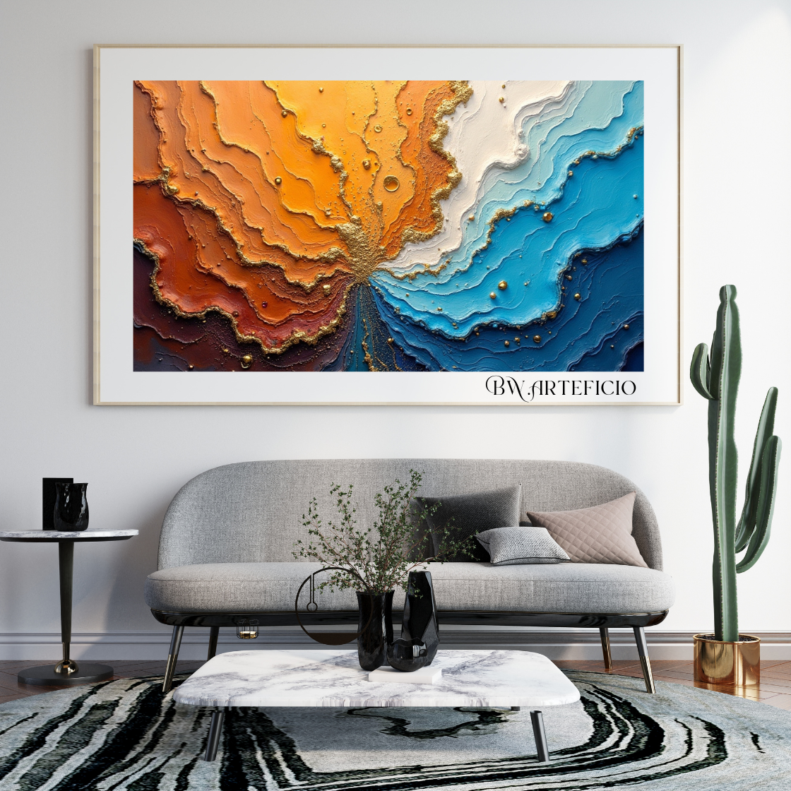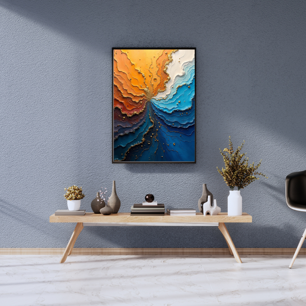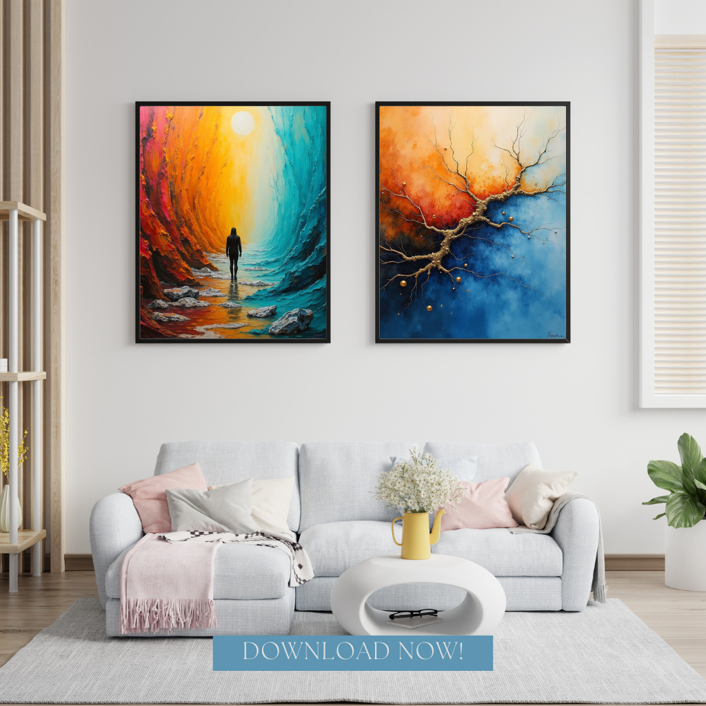 Elevate your living space with our Vibrant Abstract Fusion Art Collection. This set of 5 digital pieces features bold blue and orange hues, perfect for modern home decor and creative projects.