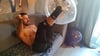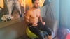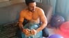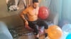 In this video the hot Brandon sit pop, knife pop, squeeze pop and blow a balloon to his maximum size.