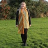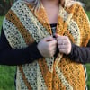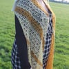 This stole uses Silkpaca in complimenting colours and is worked in a lacy corner to corner pattern resulting in diagonal stripes.