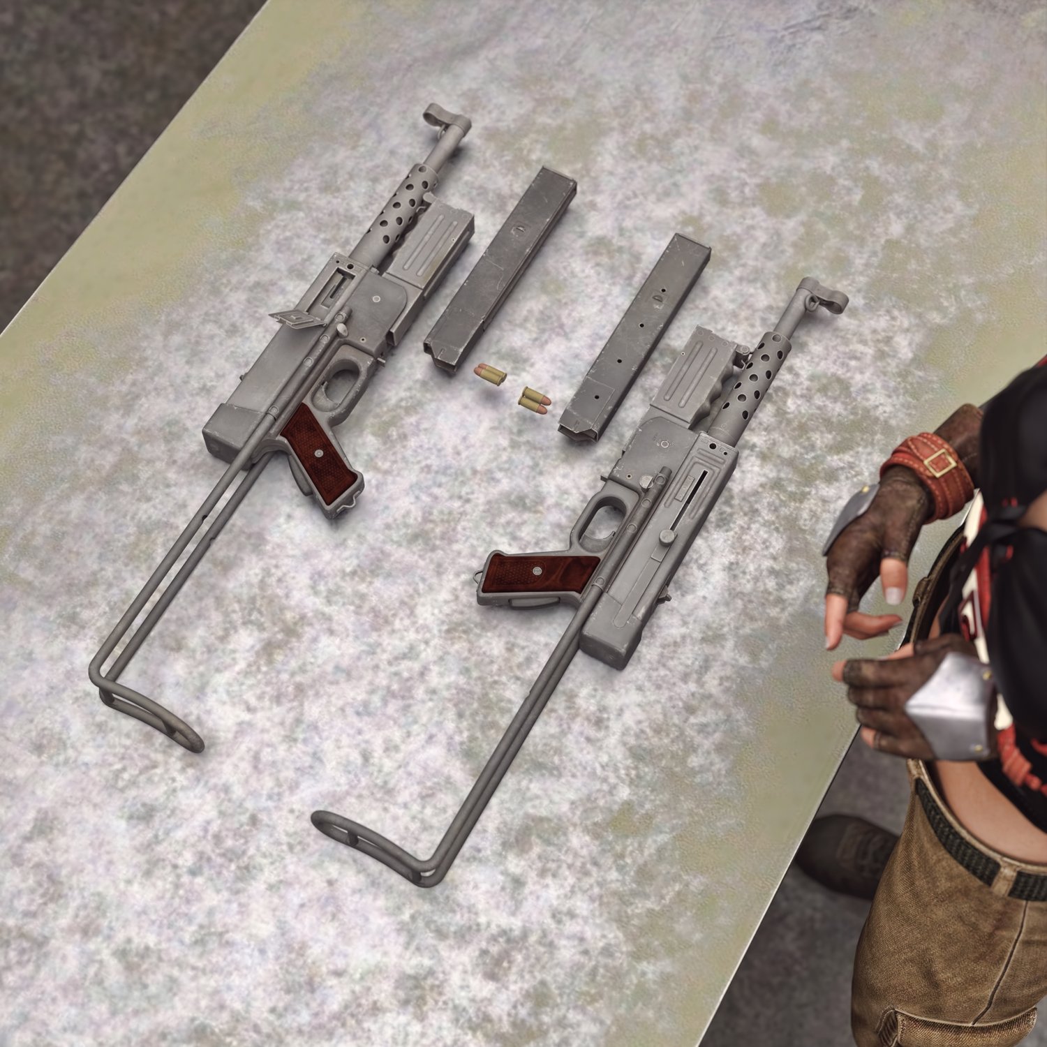 Simple and yet kinda special submachine gun. Simple design mixed with folding magazine well makes this gun very unique. Compact and cool looking, for your special forces or 60s style pictures. The prop is rigged and converted for use with DAZ. Trigger, safety, bolt etc also rigged for more realistic pictures.