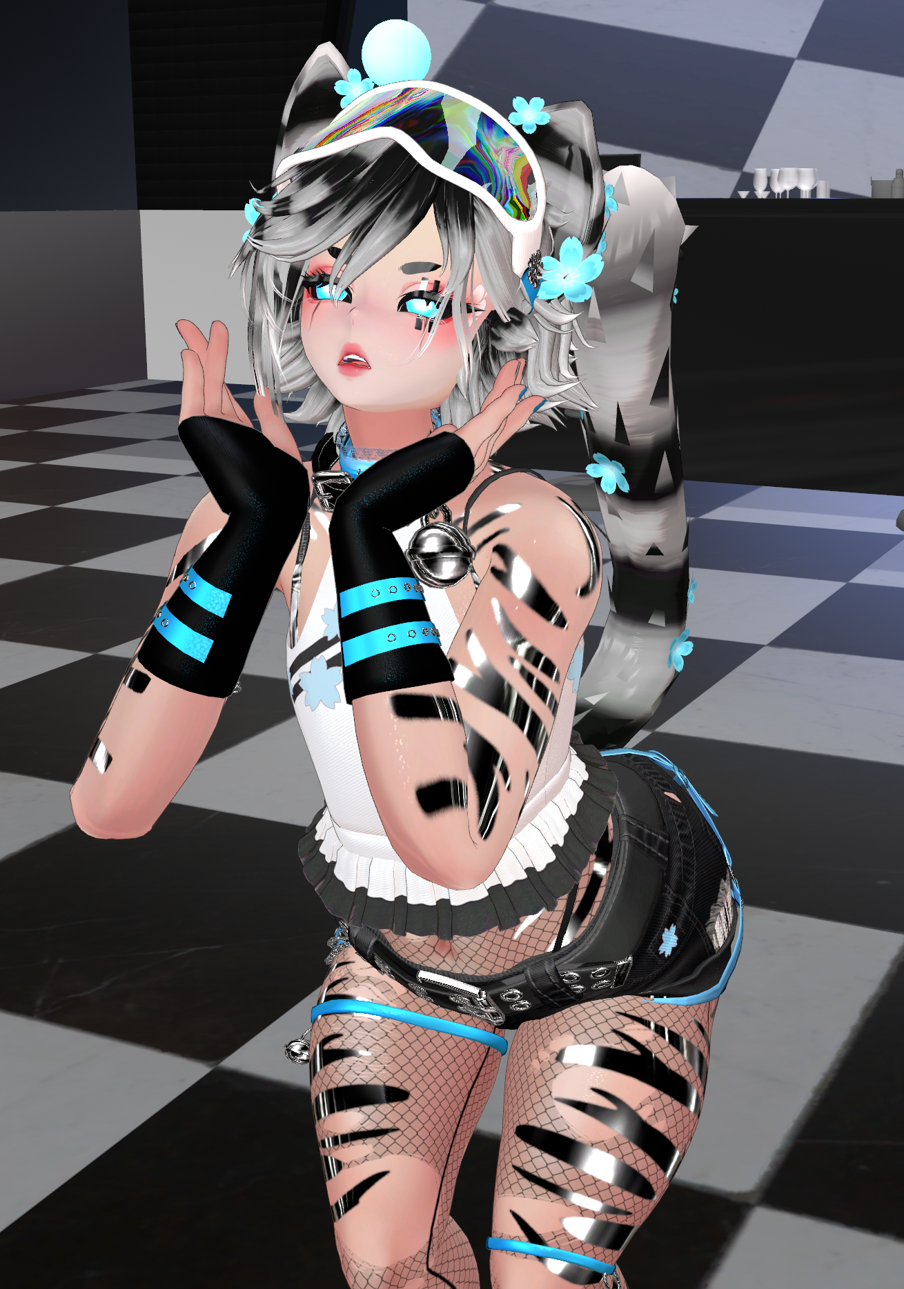 No Collar Chain, No Glasses, No Goggles, No Fishnets, No Harness, No Tattoos Slider, No Twinkify Slider, No Hair Hue, No Eye L Hue, No Teeth Swap, No Brow swap, No Sclera Swap, No Pasties, No Fur Jacket, You cant put Leggings and other bottoms on together at the same time like when on PC. No VRC FT.