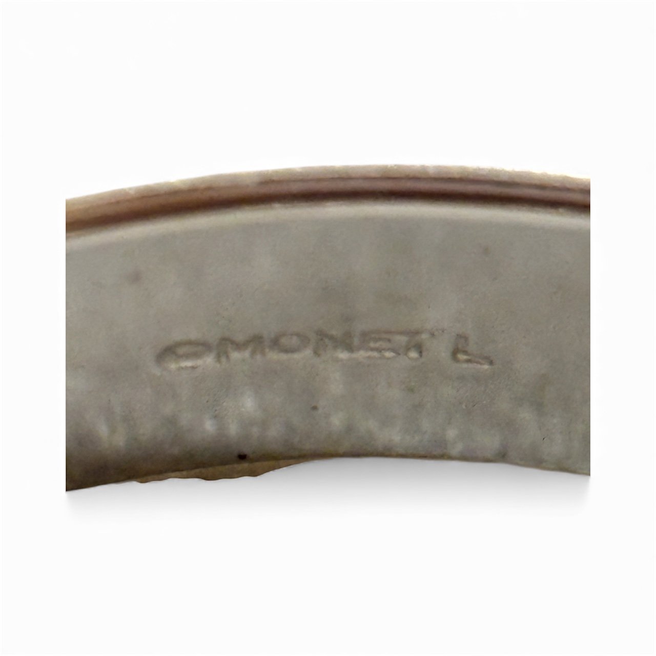 Timeless and elegant, this signed Monet silver-tone bangle embodies the brand’s signature sophistication. Its smooth, polished surface and minimalist design make it a perfect everyday piece or a chic addition to a stacked bracelet look. A staple accessory for lovers of refined vintage jewelry.