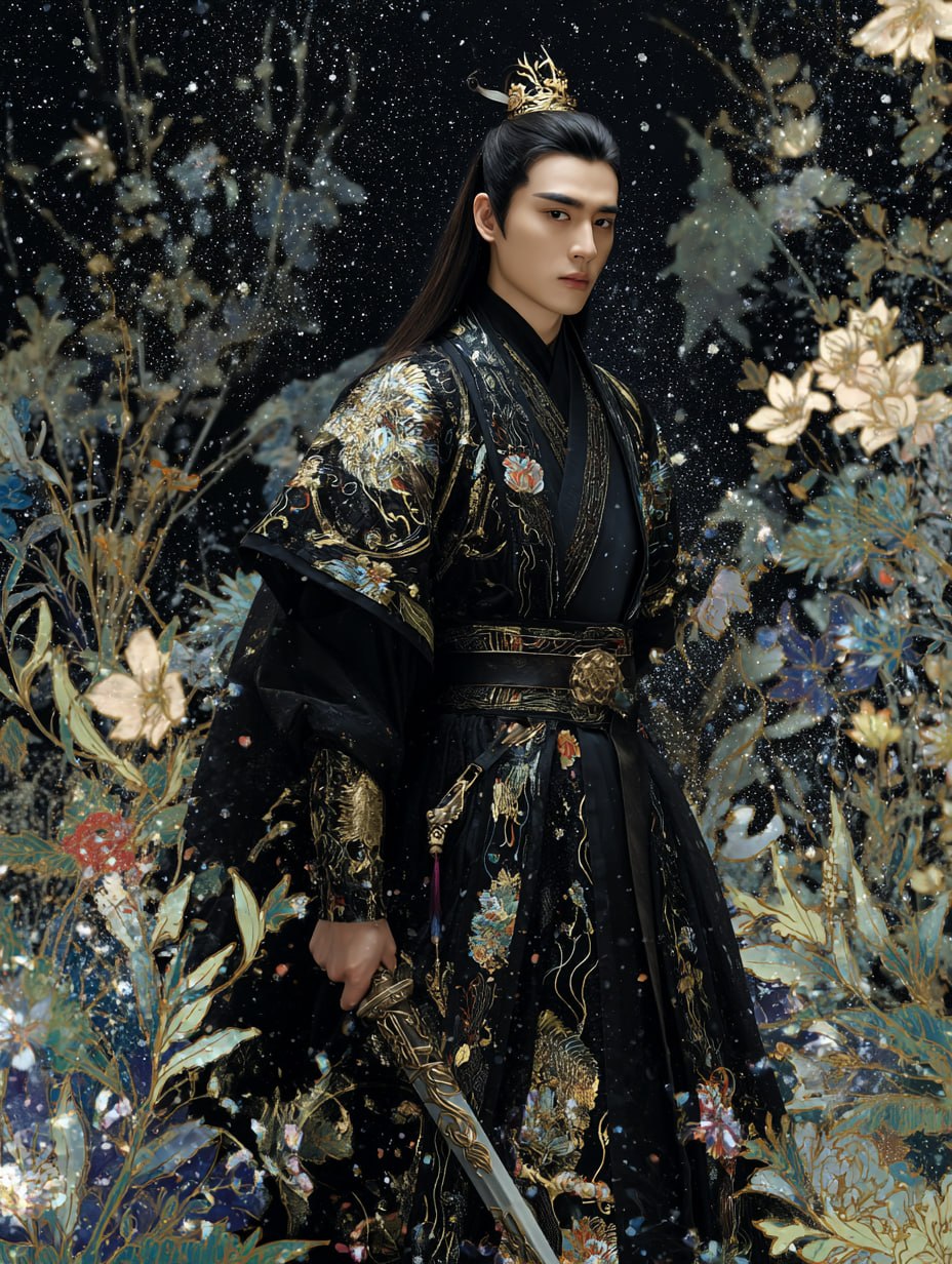 - Rich visual elements including embroidered hanfu, crown, and ancient sword aesthetics