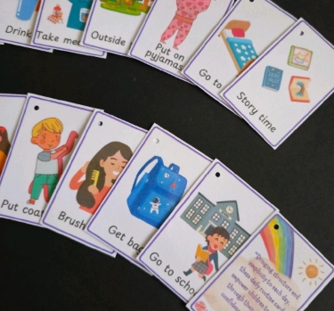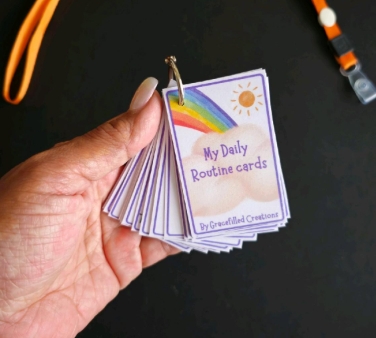 The My Daily Routine Cards are a set of flashcards designed to help individuals with special needs, including autism and speech delay, develop a routine and improve their organization skills. These cards are a visual aid for special education and can be used for non-verbal individuals with ASD and ADHD.