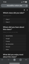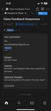 A simple feedback form for teachers (whether for school, creatives teaching in person or online classes, etc.).