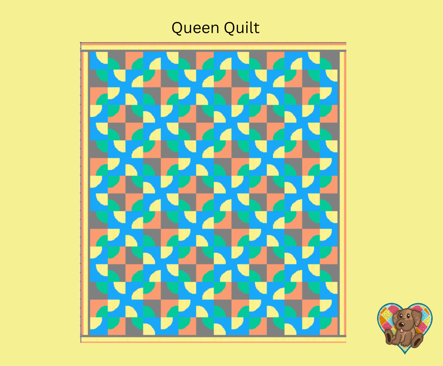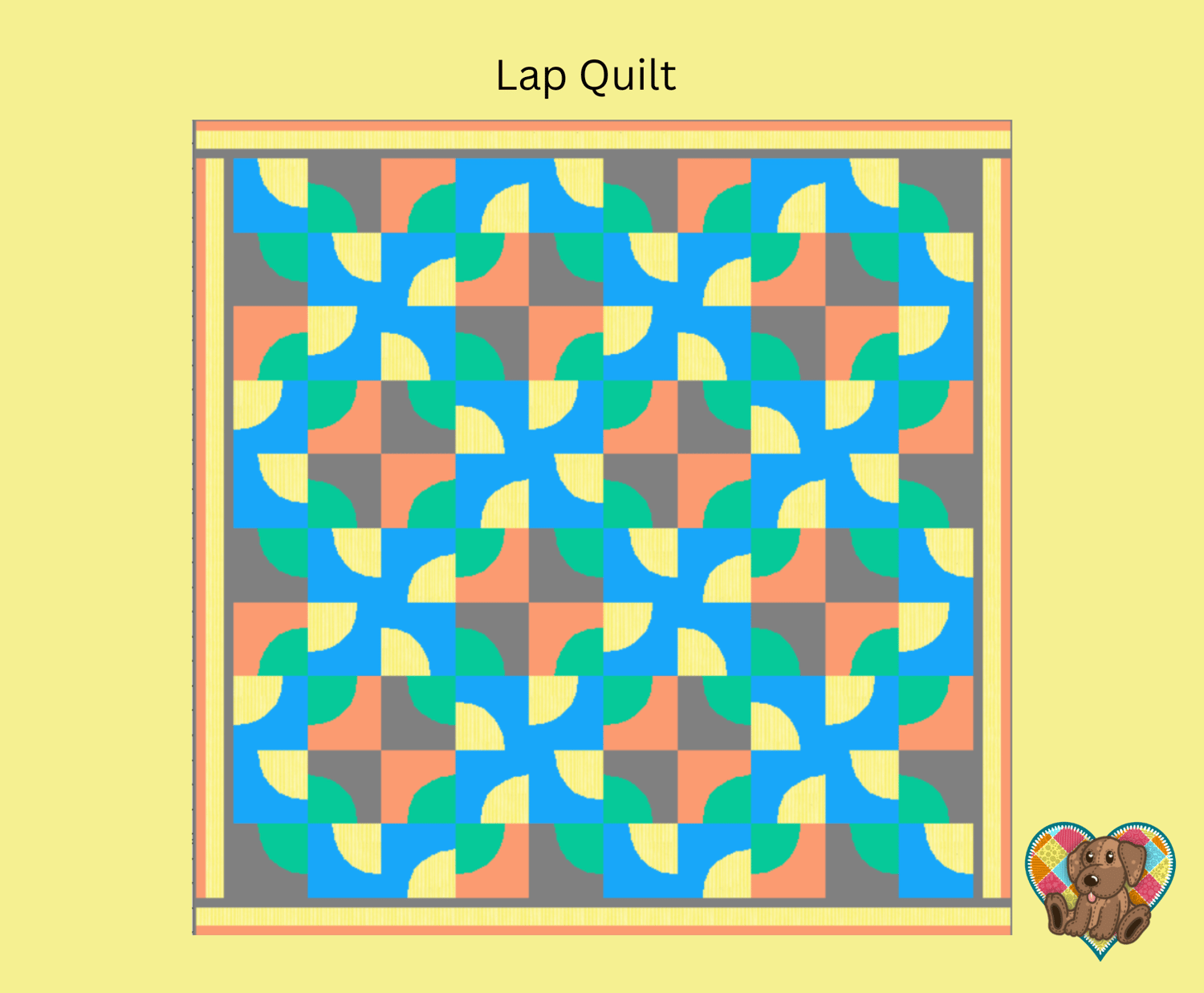 *Note: This pattern includes instructions for a lap (66.5" X 66.5"), twin (78.5" X 90.5"), and queen (90.5" X 102.5") quilt pattern* Blocks are traditional pieced curved blocks.