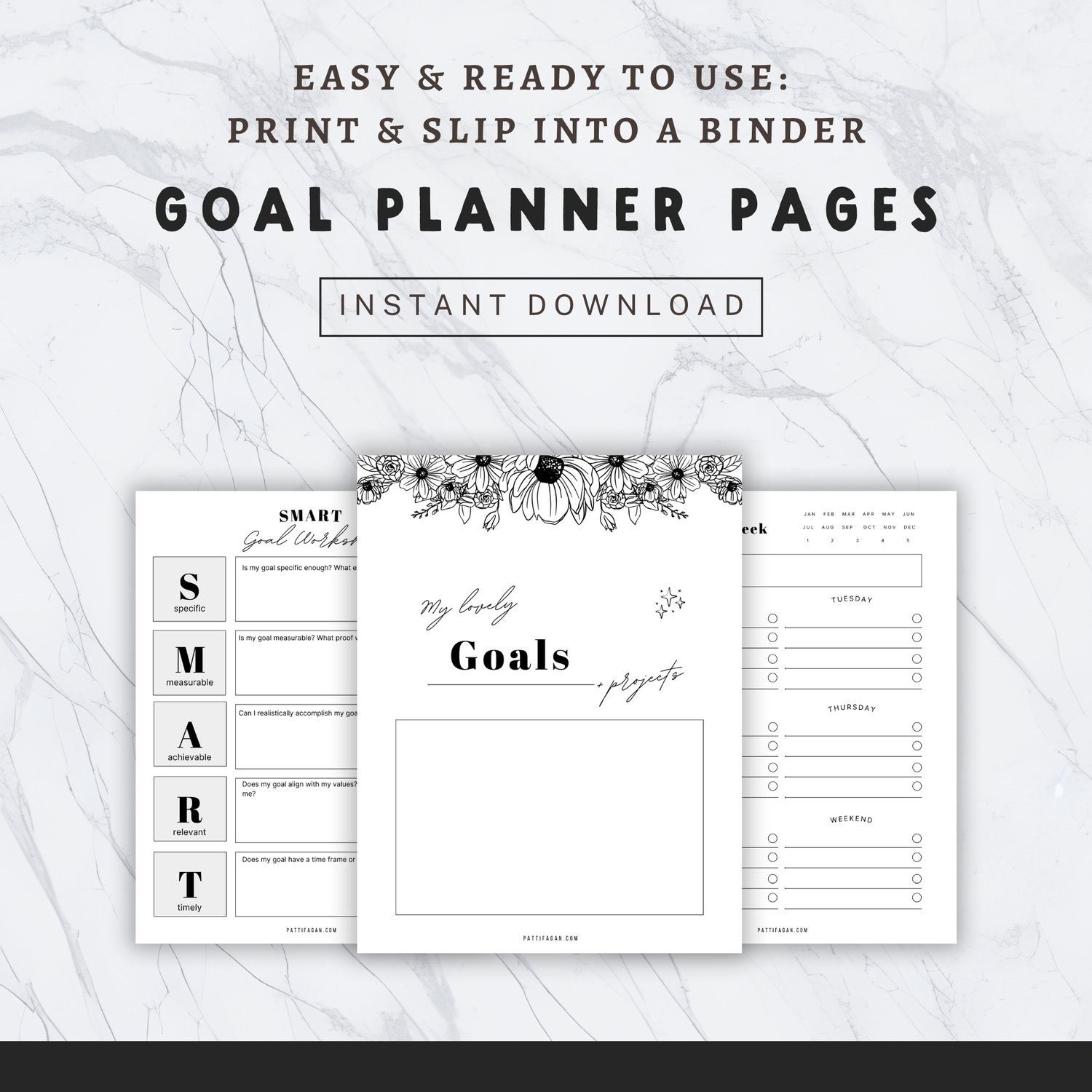 - “Goals + Projects” cover and intro pages to set the tone for your year