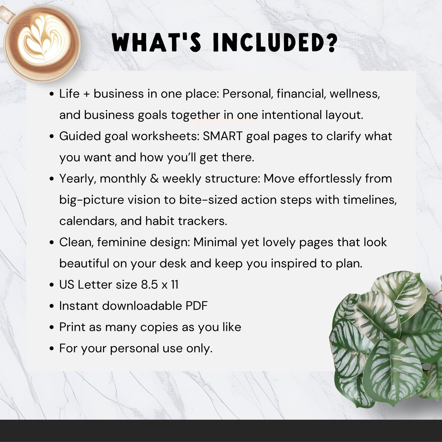 - Life + business in one place: No more juggling multiple planners—keep your personal, wellness, and business goals together in one intentional layout.