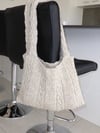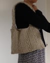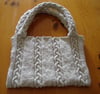 This 8ply/DK bag features plaited cable panels on the body of the bag and two plaited cable handles. The body of the bag is worked in one piece then the side seams are sewn. The handles are knitted then sewn lengthwise to make a double fabric which is both sturdy and soft. The bag can be fastened with a zip or press studs.