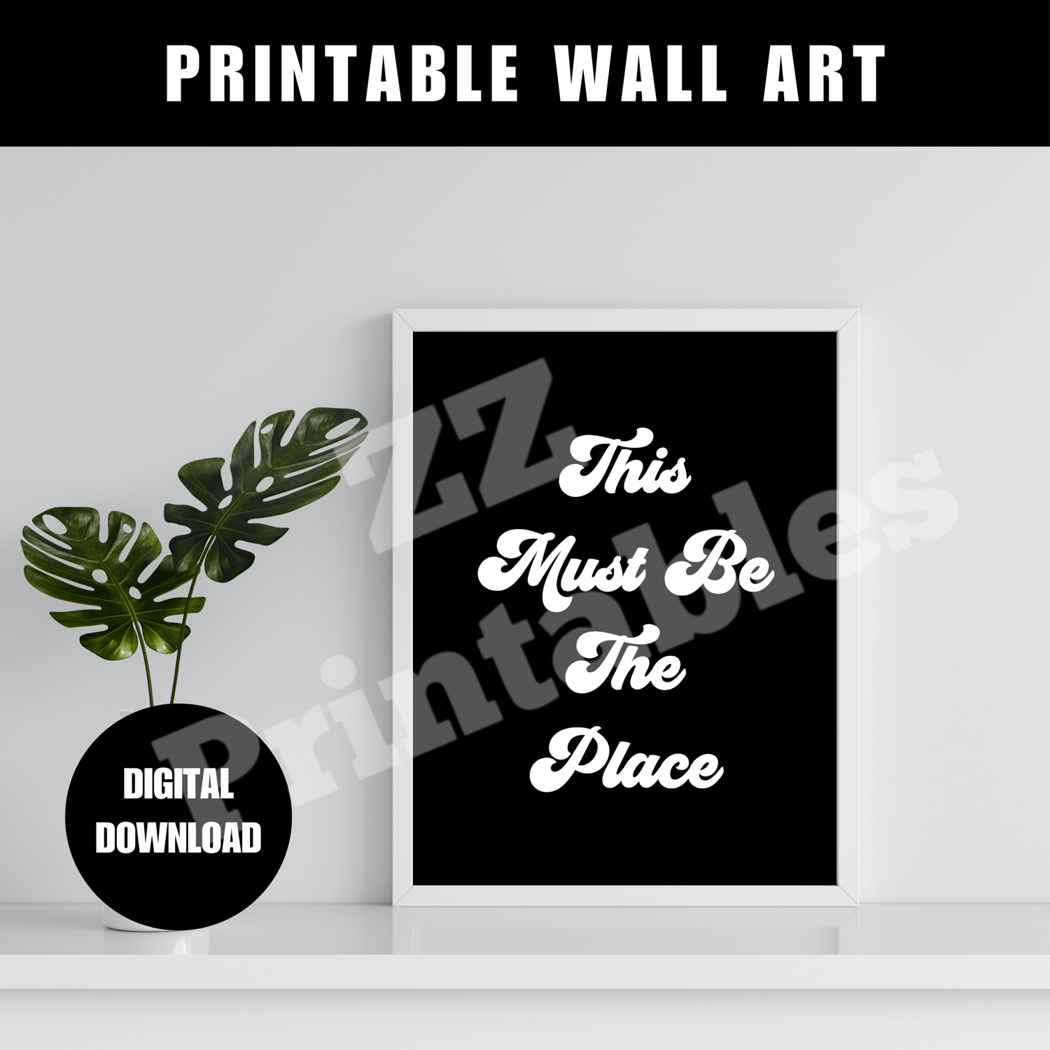 This Must Be The Place Print Poster Black White Trendy Retro Hippie Living Room College Dorm Decor Printable Wall Art Digital Download JPEG. The design comes in 5 different sizes. The digital download consists of a zipped file containing 5 high quality JPEG files (300 dpi) and a PDF size chart to help you choose the right file for the printing size you want.