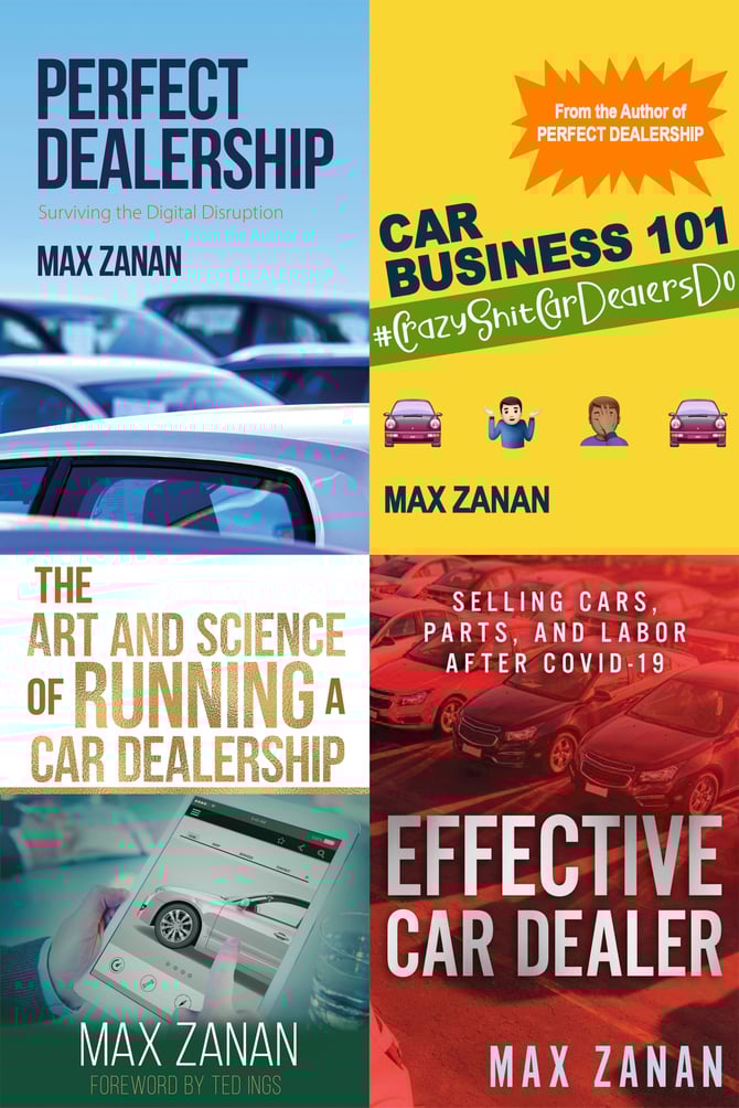 Max Zanan is the author of four best-selling books on automotive retail management: Perfect Dealership, Car Business 101, The Art and Science of Running a Car Dealership, and Effective Car Dealer. Each book is a top-ranked Amazon category leader and have received many 5-star reviews from prominent car dealership owners and managers. Max’s success as an author, general manager and entrepreneur has helped to cement his position as a preeminent voice leading the charge for modernization of the auto retail industry.