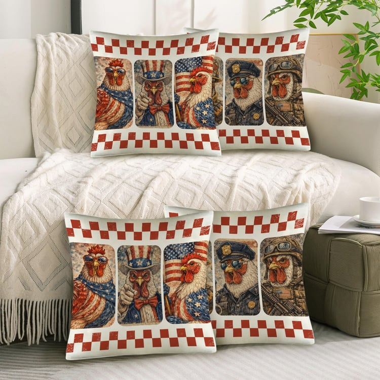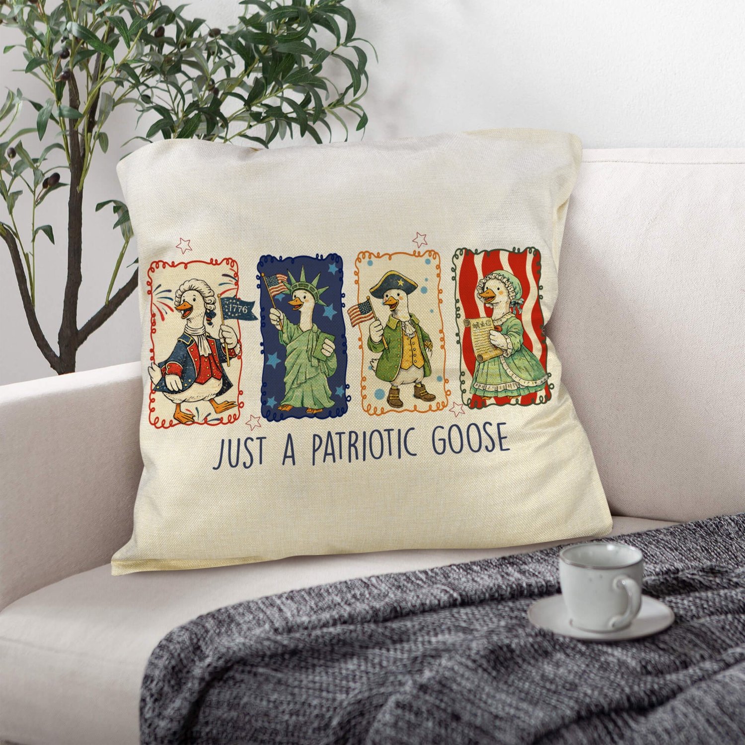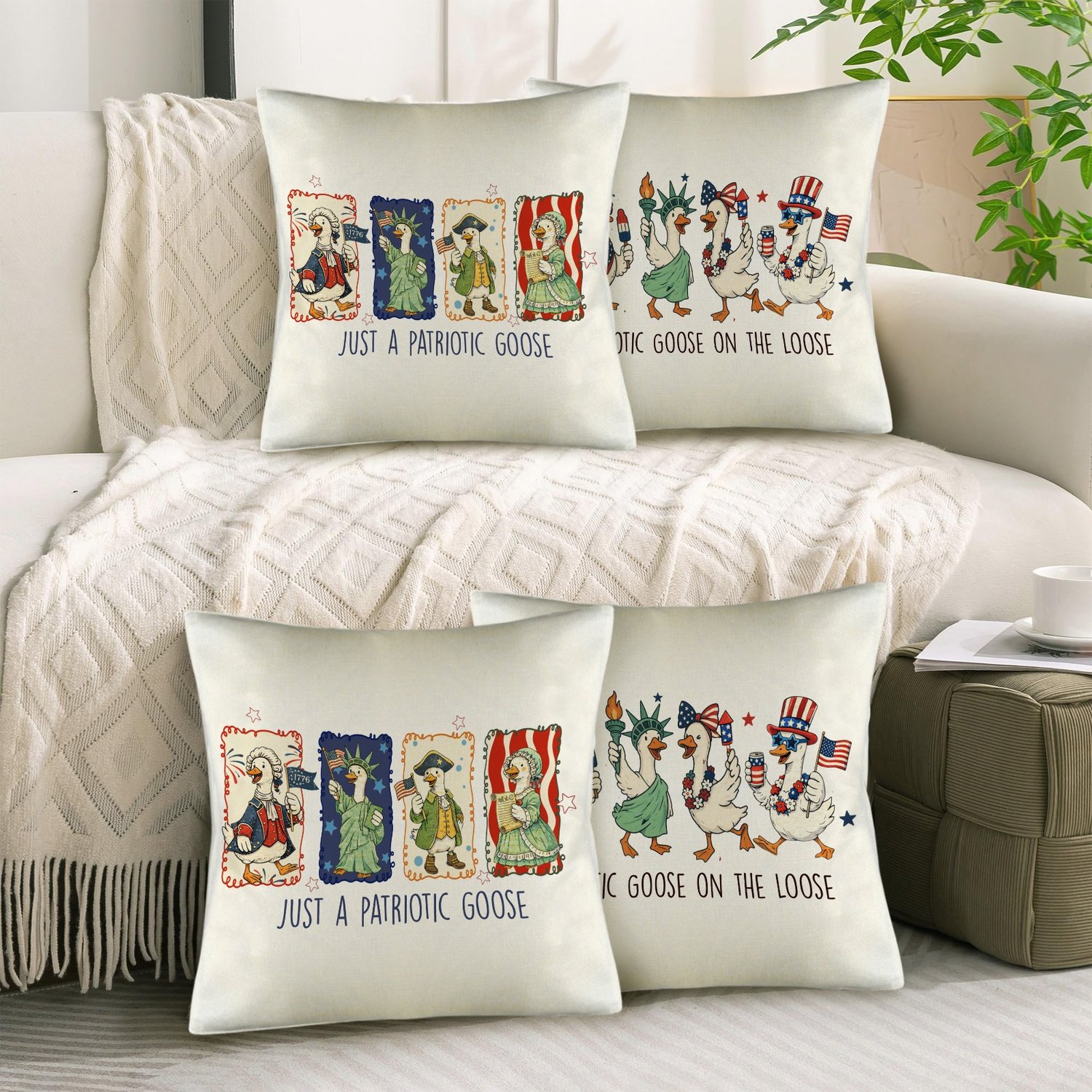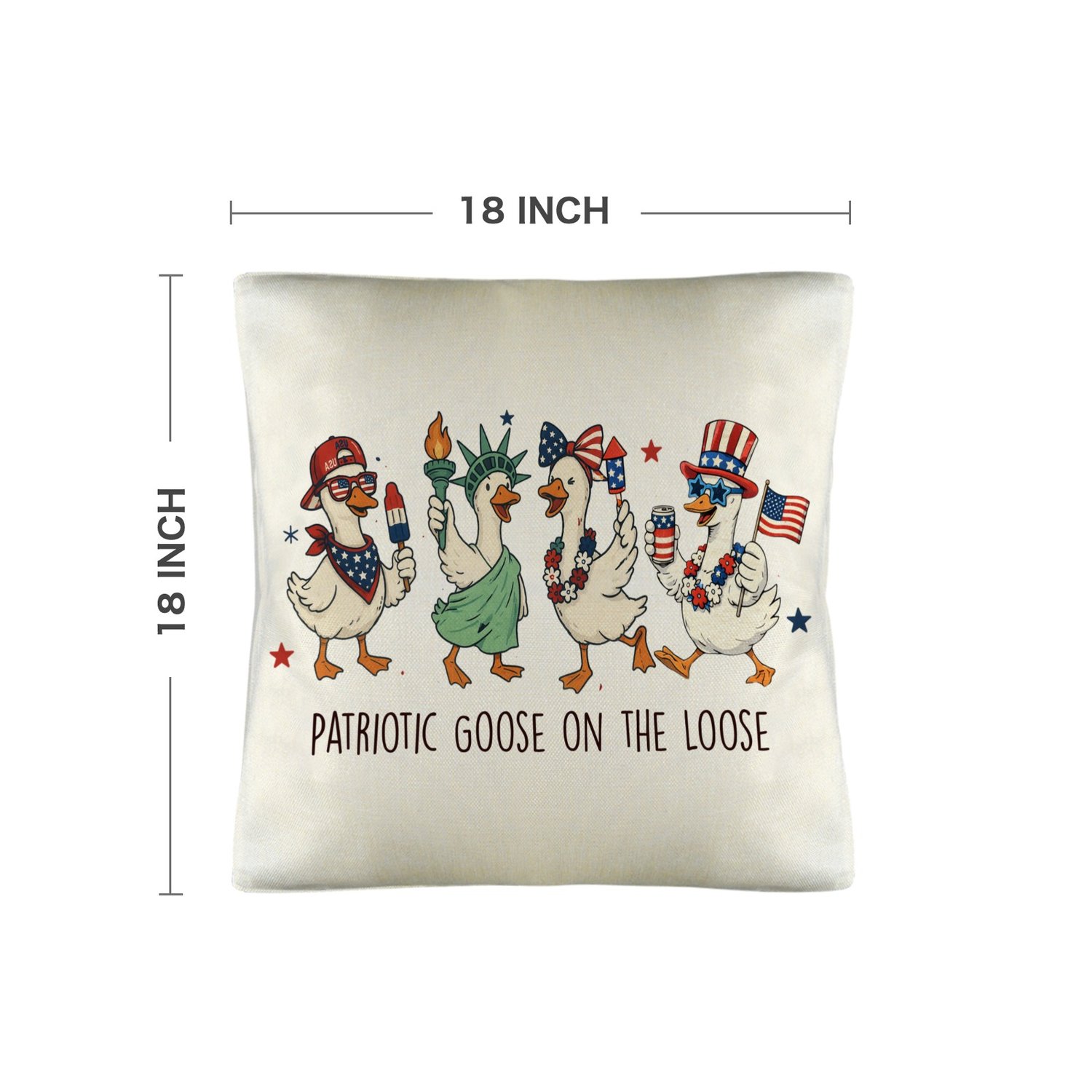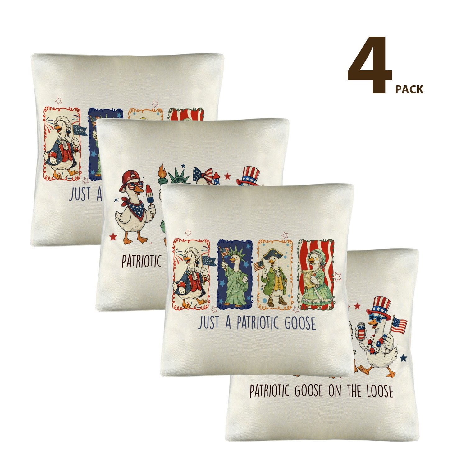 American Patriotic Goose Linen Pillow Case 18x18inch (4-Pack)