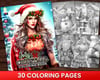 30 Jolly Christmas Winter Coloring Page Book, Adults + kids Instant Download Grayscale Coloring Page, Printable PDF, Holidays Kids Adorable