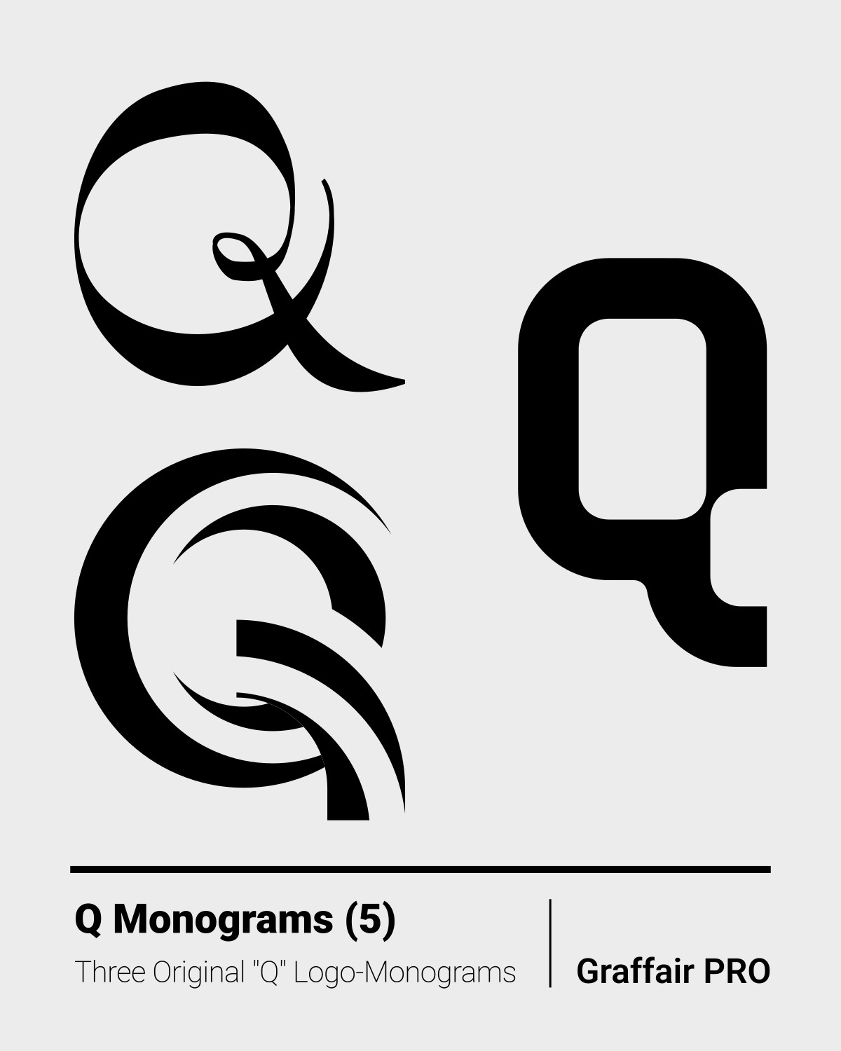 Q Monograms (5): The 5th set of three original "Q" logo monograms, included in the "1050 SVG Monograms" super bundle, which also features an Index catalog.