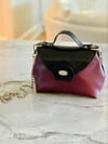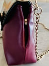 It includes a top carrying handle, detachable strap, magnetic snap flap enclosure, two side magnetic snaps that close to give the bag it's adorable, compact "honeypot" shape - and then open to give you easy access to everything in your bag!