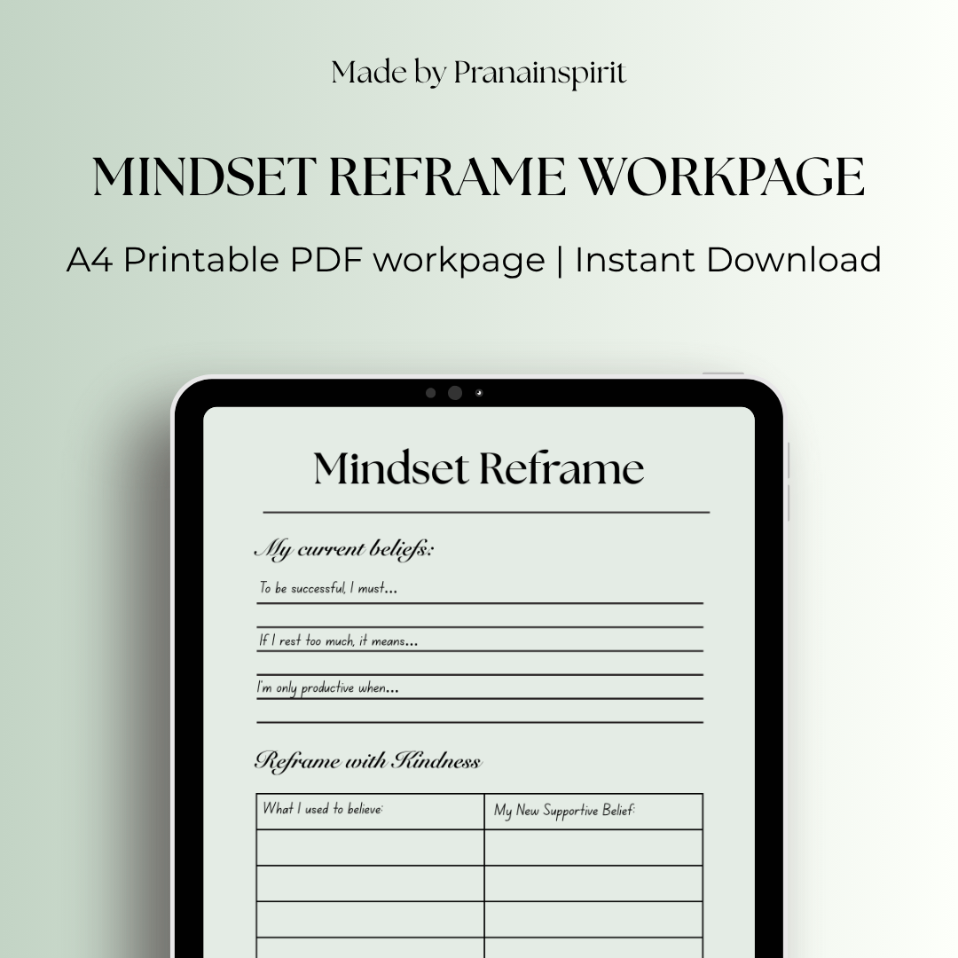 Shift your mindset and transform limiting beliefs with this powerful, easy-to-use mindset reframe worksheet. Perfect for anyone looking to boost motivation, reduce stress, and cultivate a growth mindset through mindful reflection and journaling.