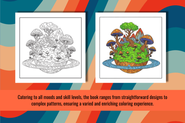 Unleash your creativity and melt away stress with "Psychedelic Coloring Book for Adults: Abstract Animals, Mushrooms, Aliens, and Fantasy Scenes for Stress Relief and Relaxation." This captivating collection features 40 intricate and imaginative illustrations inspired by psychedelic art, designed especially for adult coloring enthusiasts seeking a peaceful and inspiring activity.