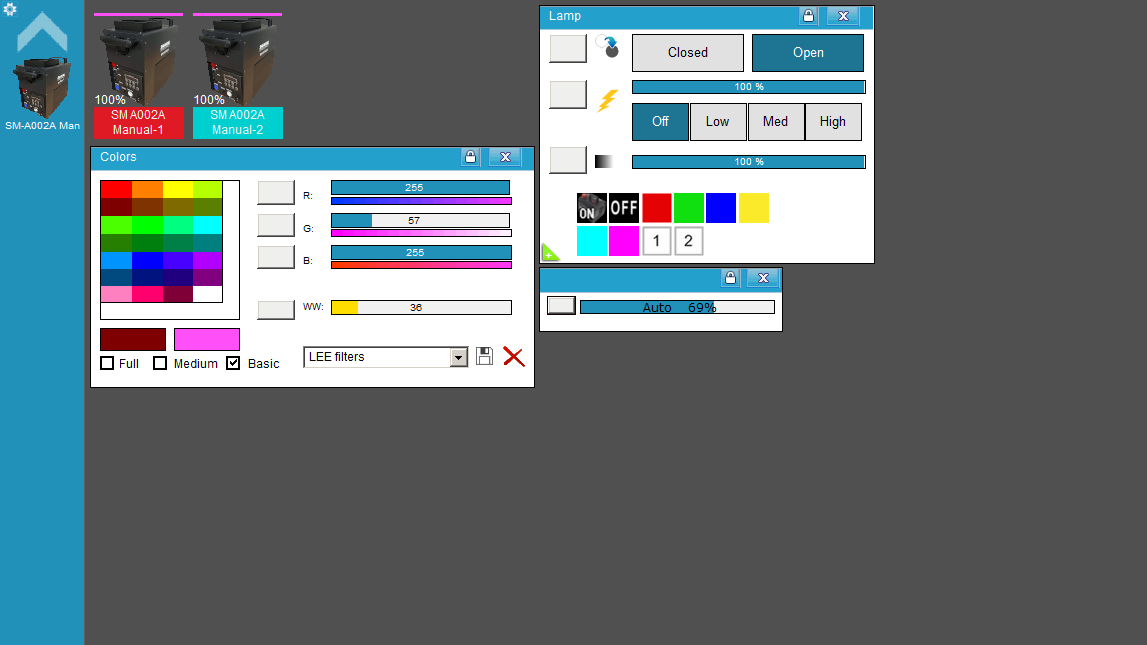 - Desde el Panel de Macros o alargando el Panel de Lámpara, tenemos iconos de: