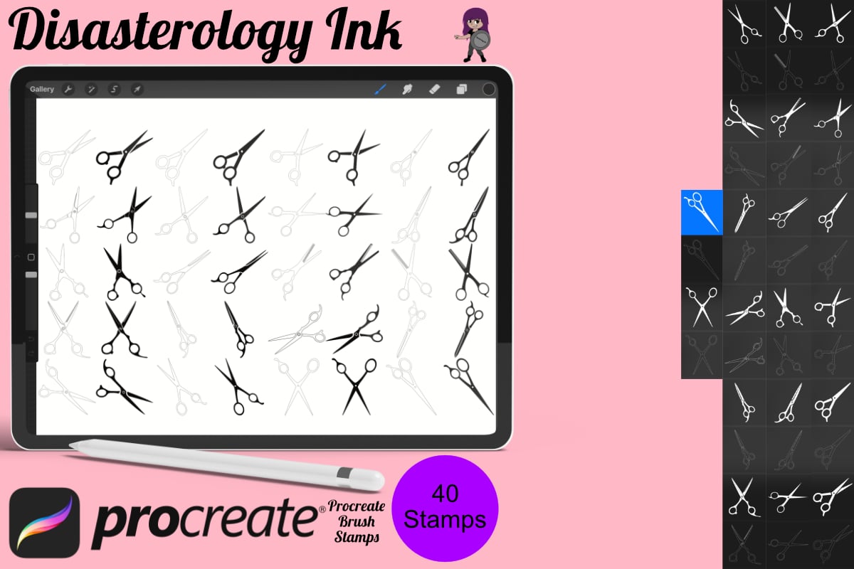 - 40 Scissors stamps for Procreate