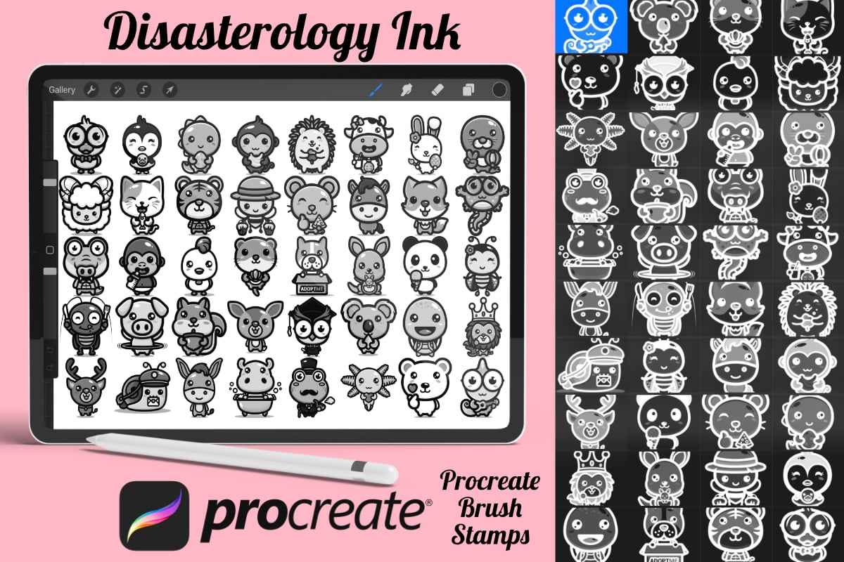 Pack of 40 Cute Cartoon Animals Procreate Stamp Brushes! These cute cartoon animals stamps are perfect for making illustration projects or any procreate purpose. You can use these in any colour or opacity and they can be resized to best fit your art. You need Procreate 5.0.8 or 5X, an iPad, and an Apple Pencil. Also, these stamp brushes are not pressure sensitive and can be used with third party stylus, Apple Pencil or even your finger. You can change the colour, size and opacity of these stamps.