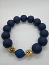 Blue Friendship Bracelet - 2 Gold Beads (stretch)