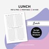 Organize your life with our Lunch script planner stickers! These stylish and functional stickers are perfect for any type of planner and help bring structure to your day. With each sticker sized to fit a 1-inch width box, they’re ideal for various planners, journals, or scrapbooks, giving a neat, cohesive look to your layouts.