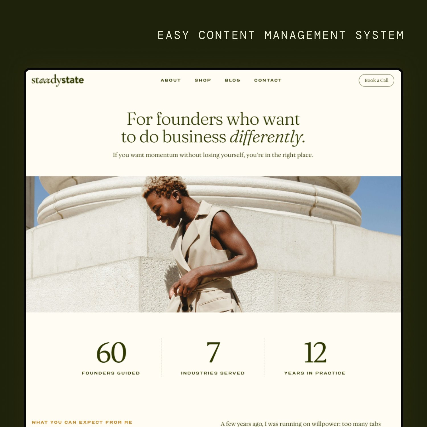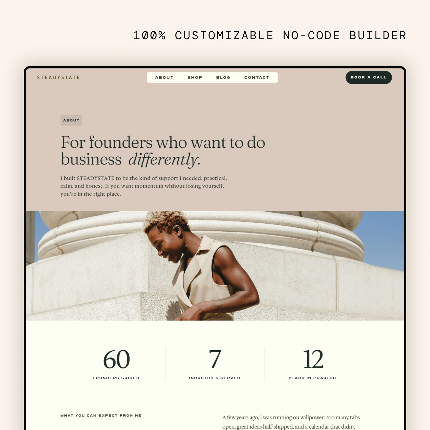 - About: Founder story with credibility blocks