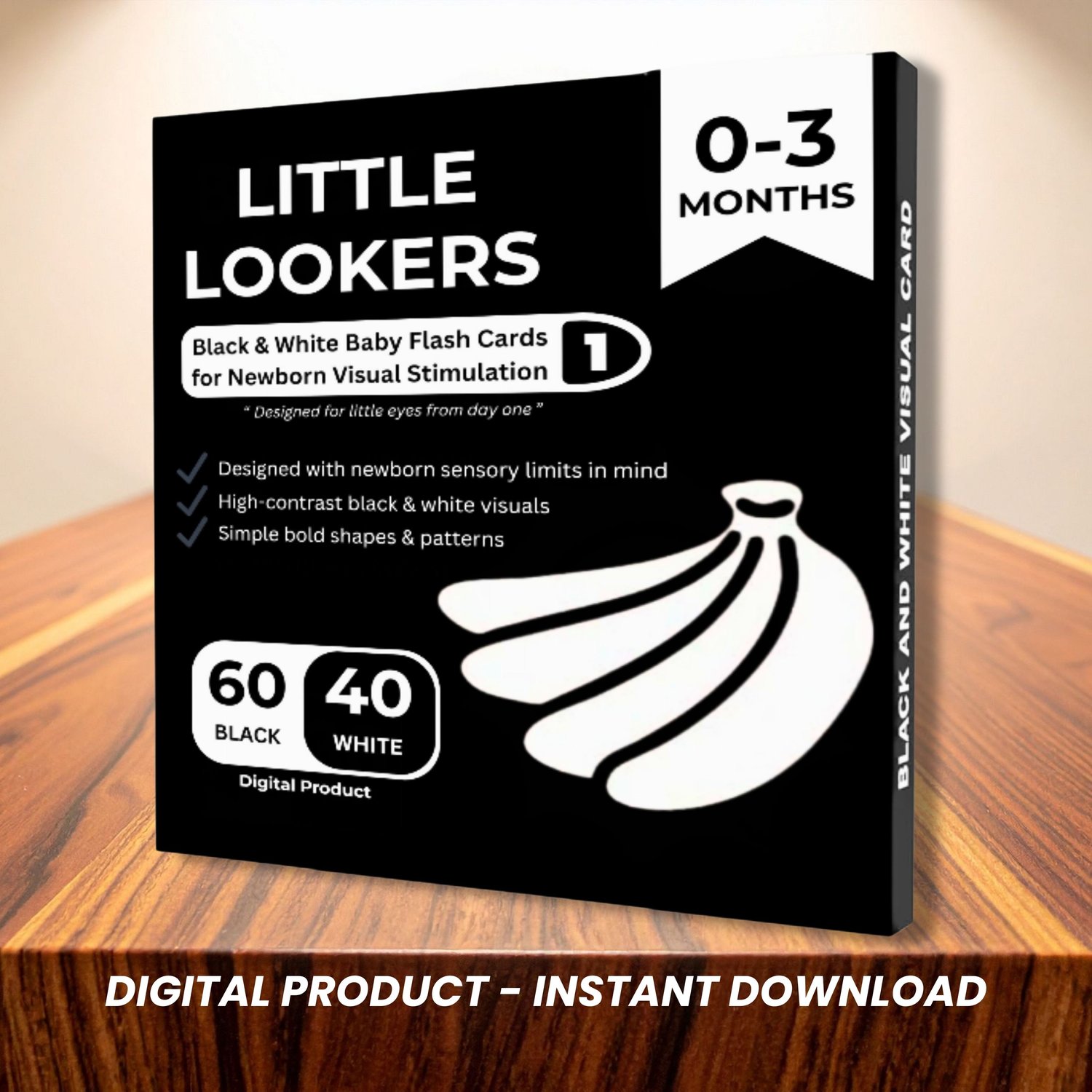 Support your newborn’s early visual development with this curated set of 100 Black & White High-Contrast Flashcards, specially designed for babies aged 0–3 months. Newborns respond best to bold contrasts, making these cards perfect for stimulating early sensory and brain development.