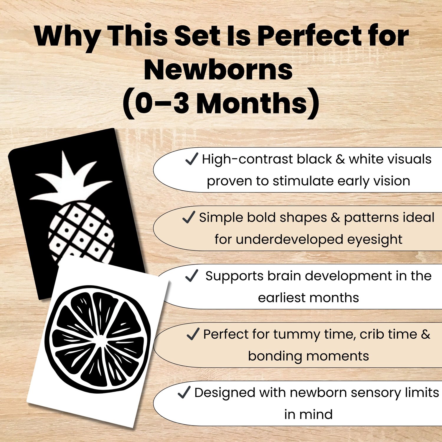✔ High-contrast visuals proven to stimulate newborn vision