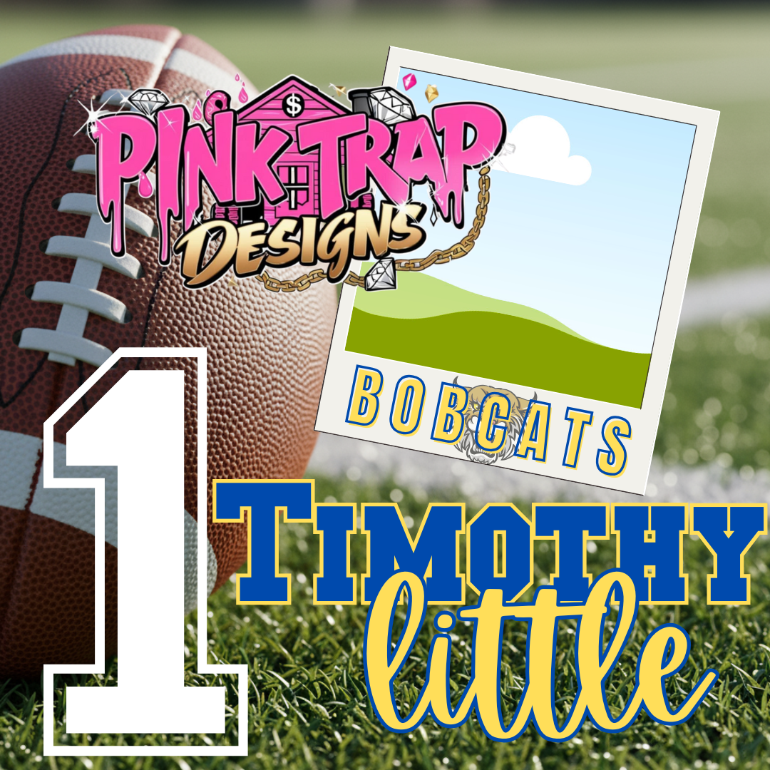 This editable Football-Themed Sports Template is perfect for creating personalized player cards, team posters, or sports keepsakes. The design features a bold varsity-style number, slab-serif player name, and a photo frame overlay placed against a realistic football field background. The layout captures the energy of the game while keeping your player front and center.