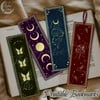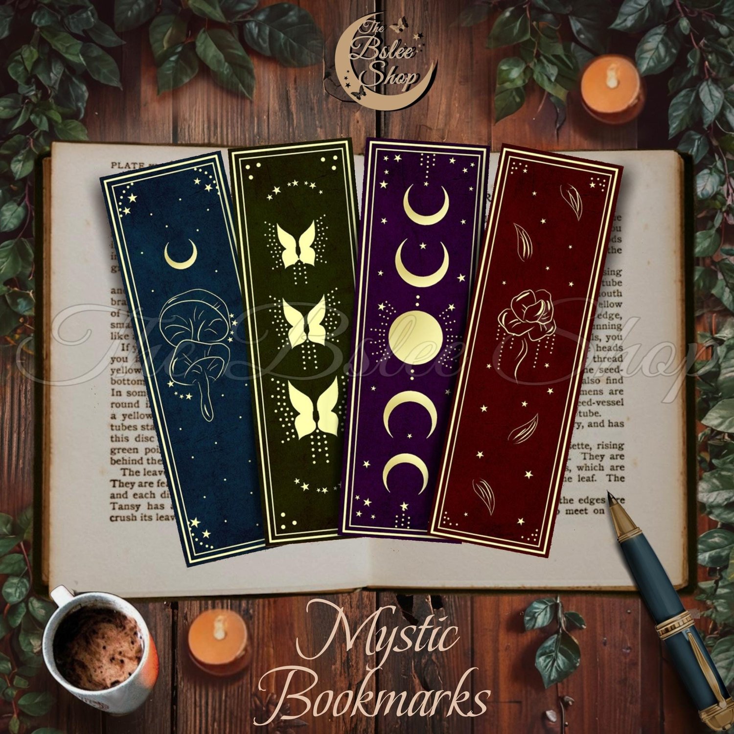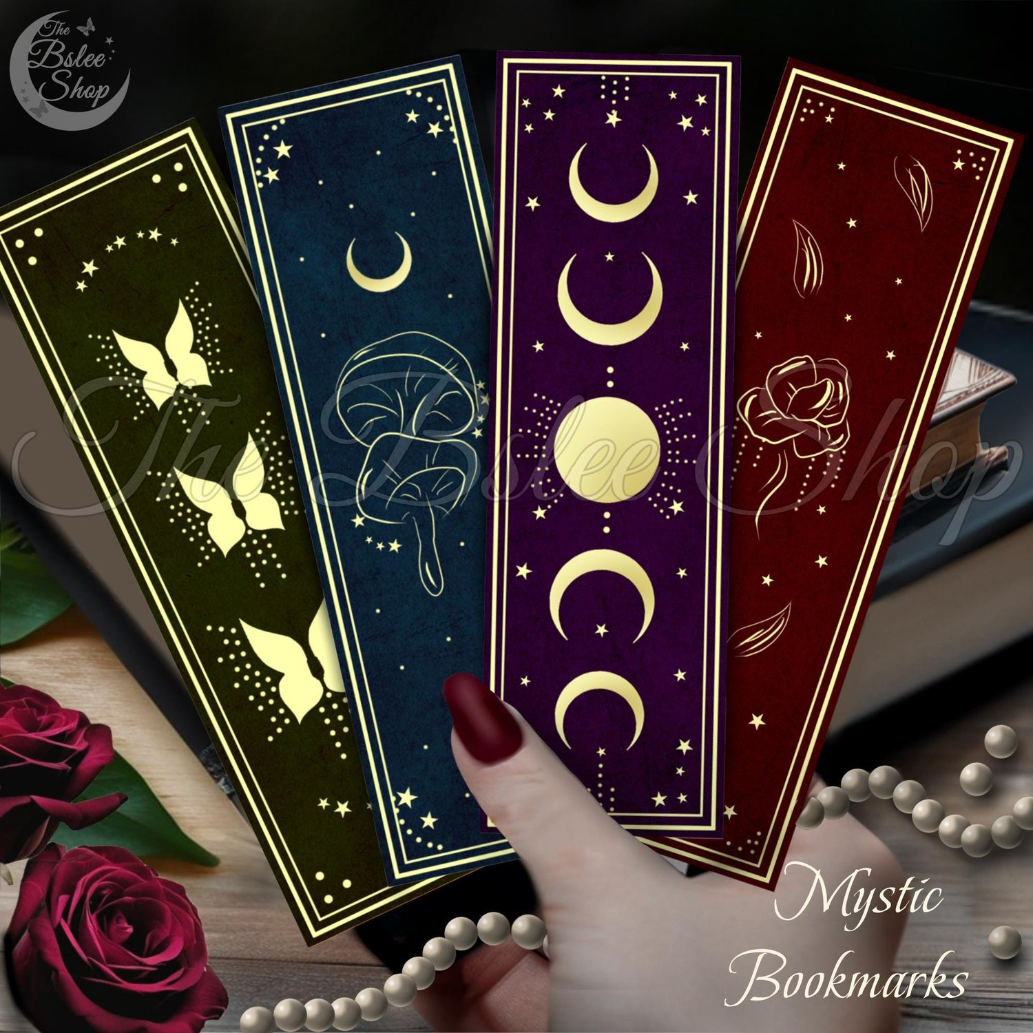 This is a gorgeous set of 4 vintage/mystic bookmarks in purple, green, red and blue colors, hand-drawn by me with moon, mushrooms, flowers and butterflies designs! You can also use these bookmarks for scrapbooking or home decoration! Save time by instantly downloading and printing the items, there is no shipping cost.