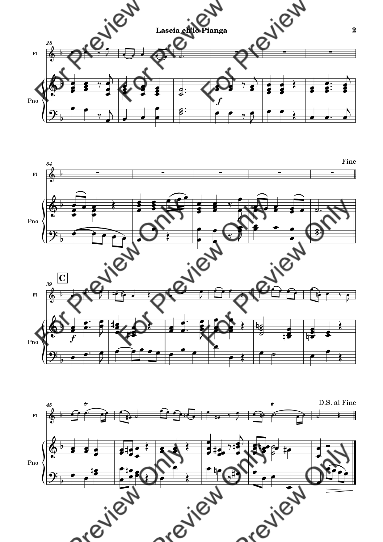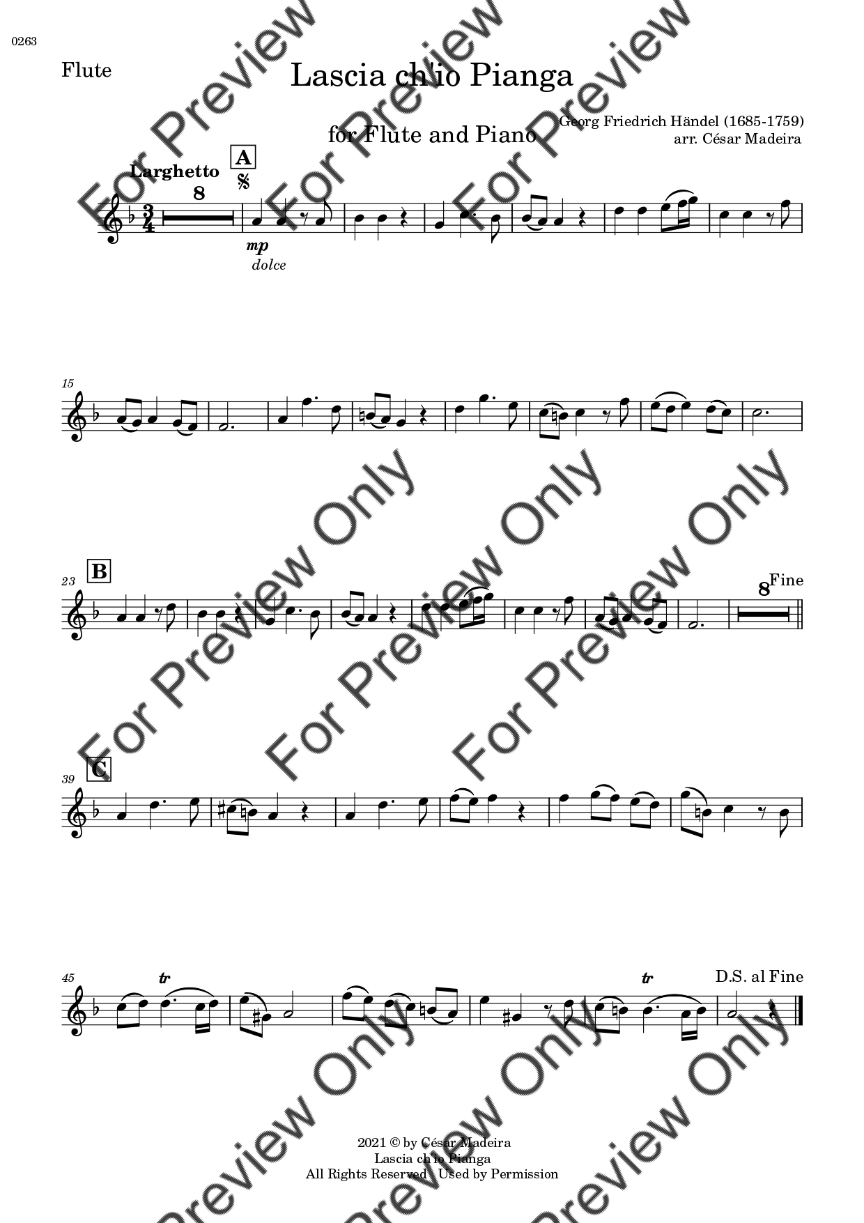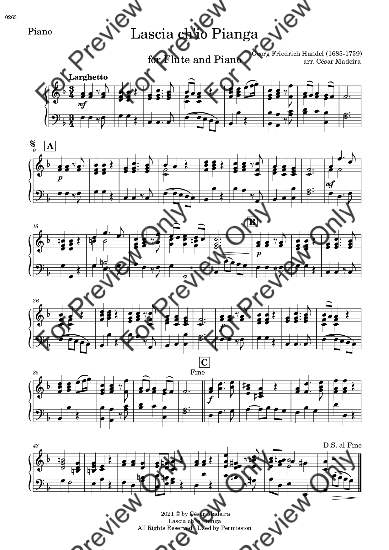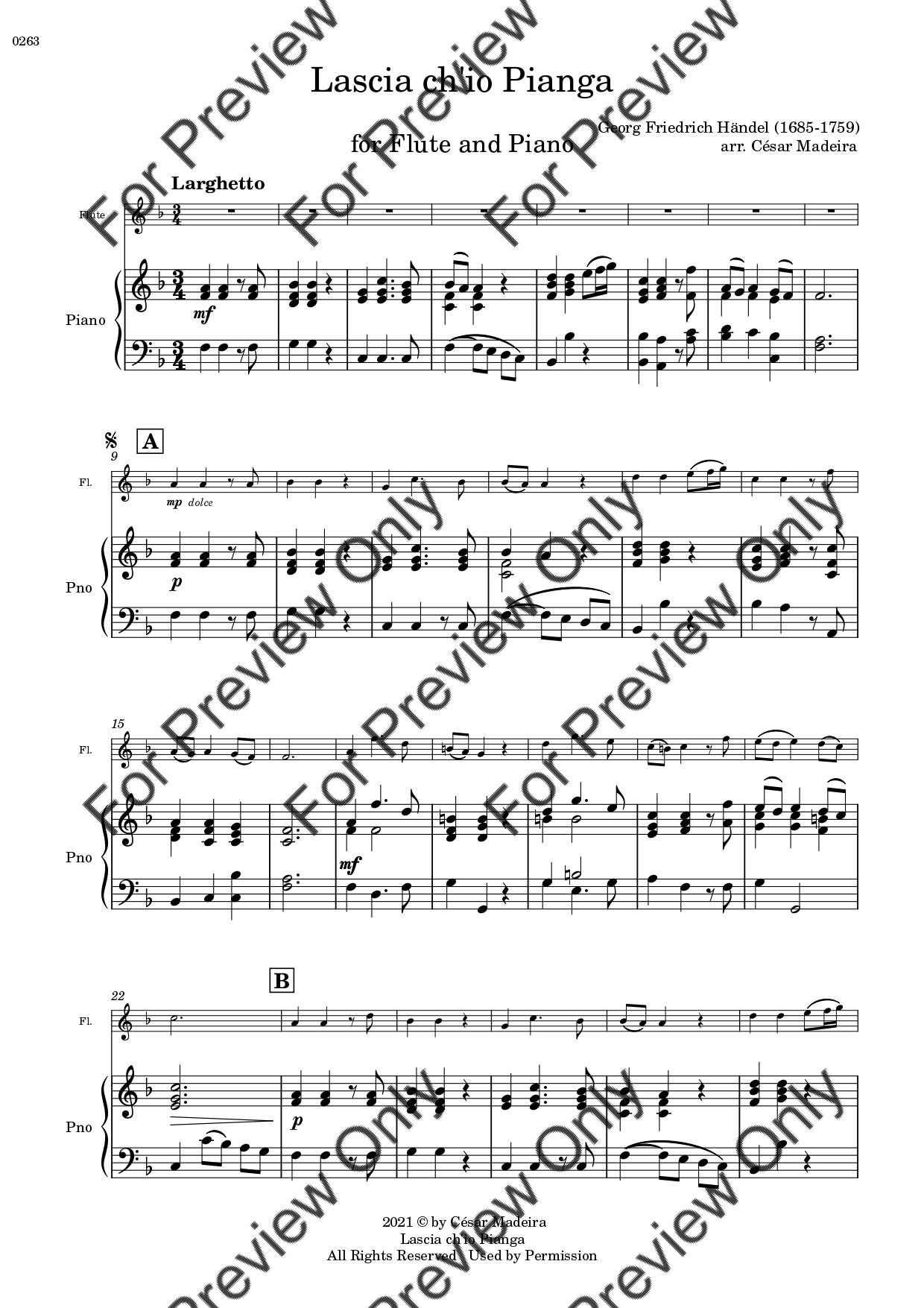Lascia Ch'io Pianga by Georg Friedrich Handel. Arrangement for Flute and Piano. With Full Score and Individual Parts. Have fun!